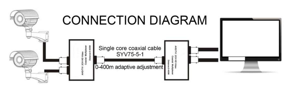 ► 2 Channel CVI/AHD/TVI video signal for camera over 1 coaxial cable