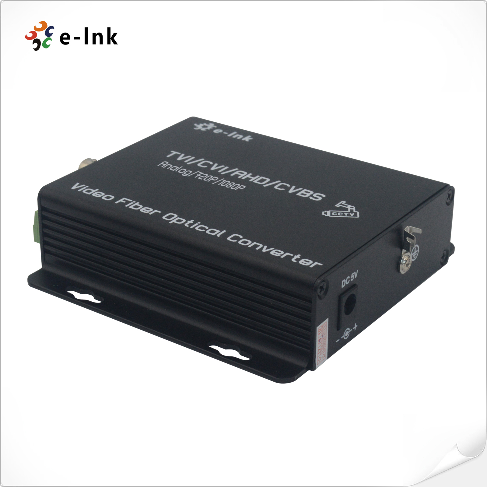 E-link 1Ch AHD/CVI/TVI/CVBS Fiber optic transceiver can simultaneously transmit 1 channel AHD, HD-CVI, HD-TVI or CVBS Video over one multimode or single-mode optical fiber. Electronic and optical adjustments are never required. LED indicators are provided for instantly monitoring system status. Devices are available for either standalone or rack-mount installation, which is suitable for different working environment. It supports input video format as 25/30/50/60fps@720P & 25/30fps@1080P.