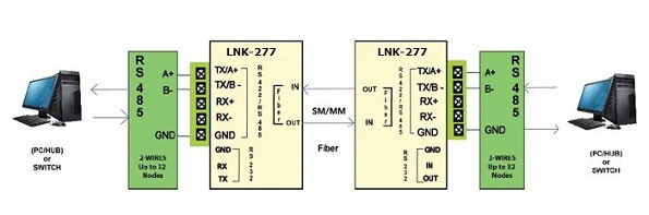 | LNK-277M | RS232/RS422/RS485 serial ports to fiber converter, Phoenix terminal, MM, dual fiber, 2Km,SC, standalone, external power adaptor |