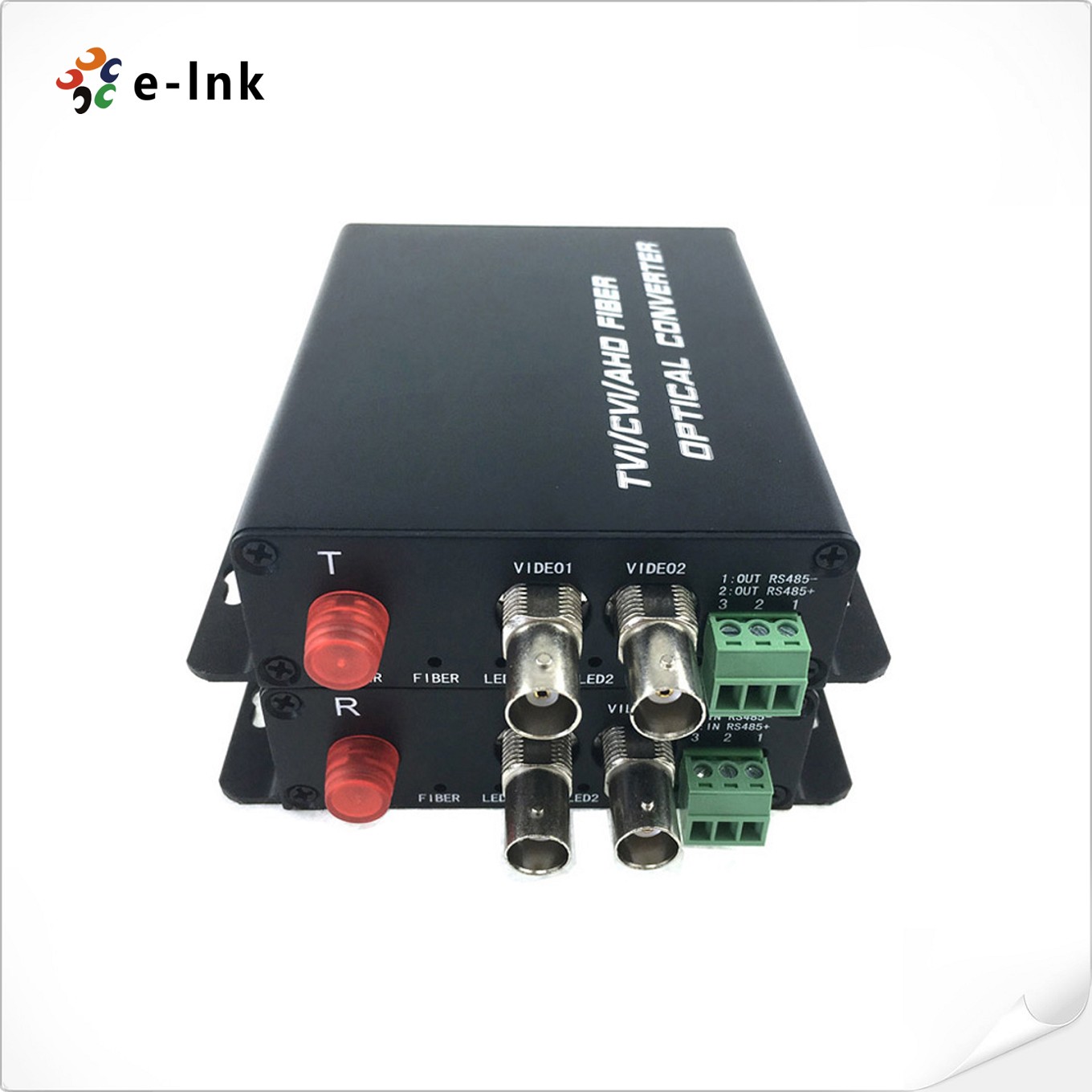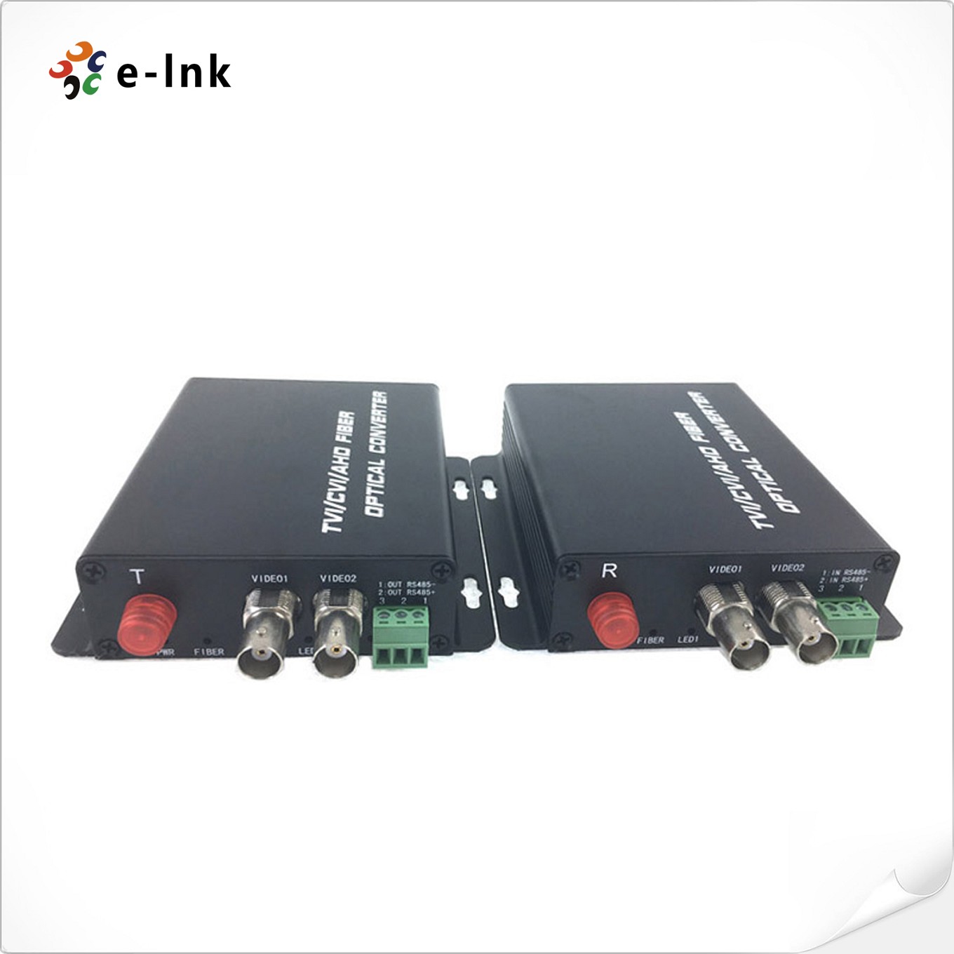E-link 2Ch AHD/CVI/TVI/CVBS Fiber optic transceiver can simultaneously transmit 2 channels AHD, HD-CVI, HD-TVI or CVBS Video over one multimode or single-mode optical fiber. Electronic and optical adjustments are never required. LED indicators are provided for instantly monitoring system status. Devices are available for either standalone or rack-mount installation, which is suitable for different working environment. It supports input video format as 25/30/50/60fps@720P & 25/30fps@1080P.