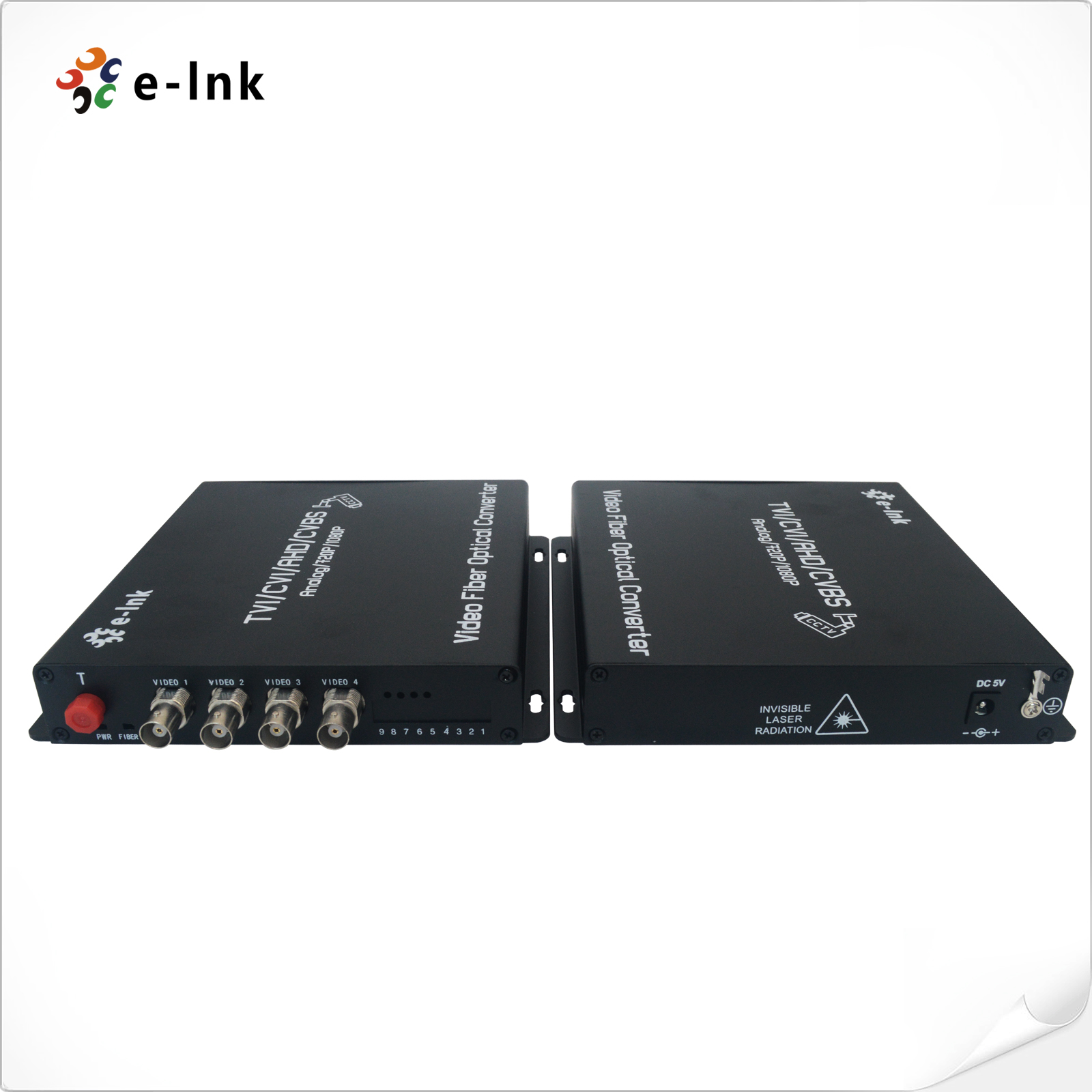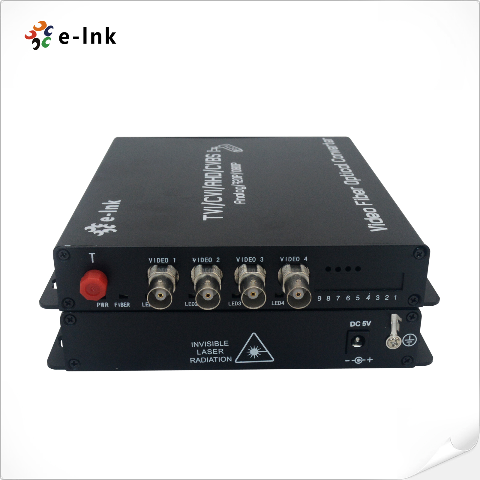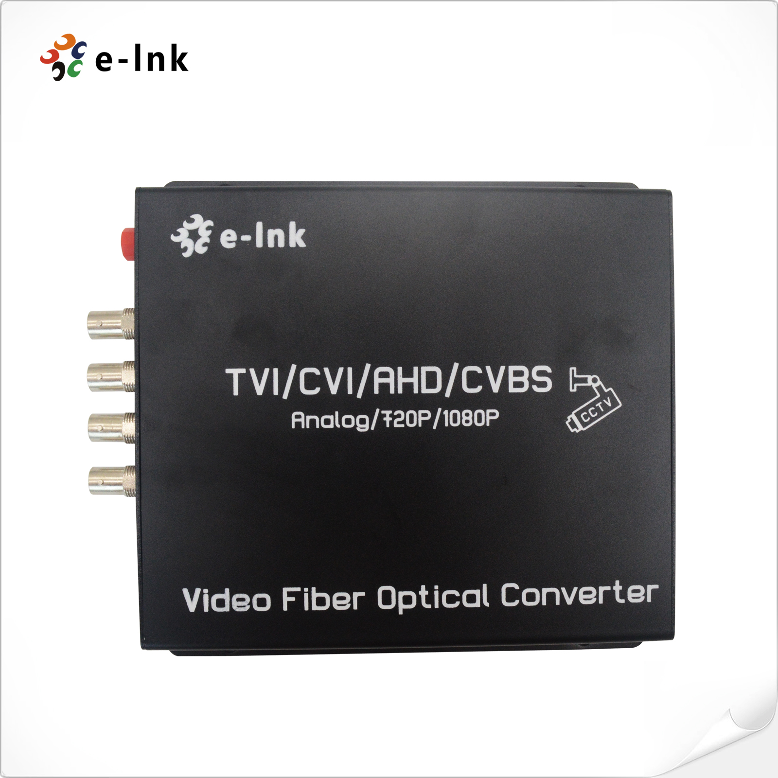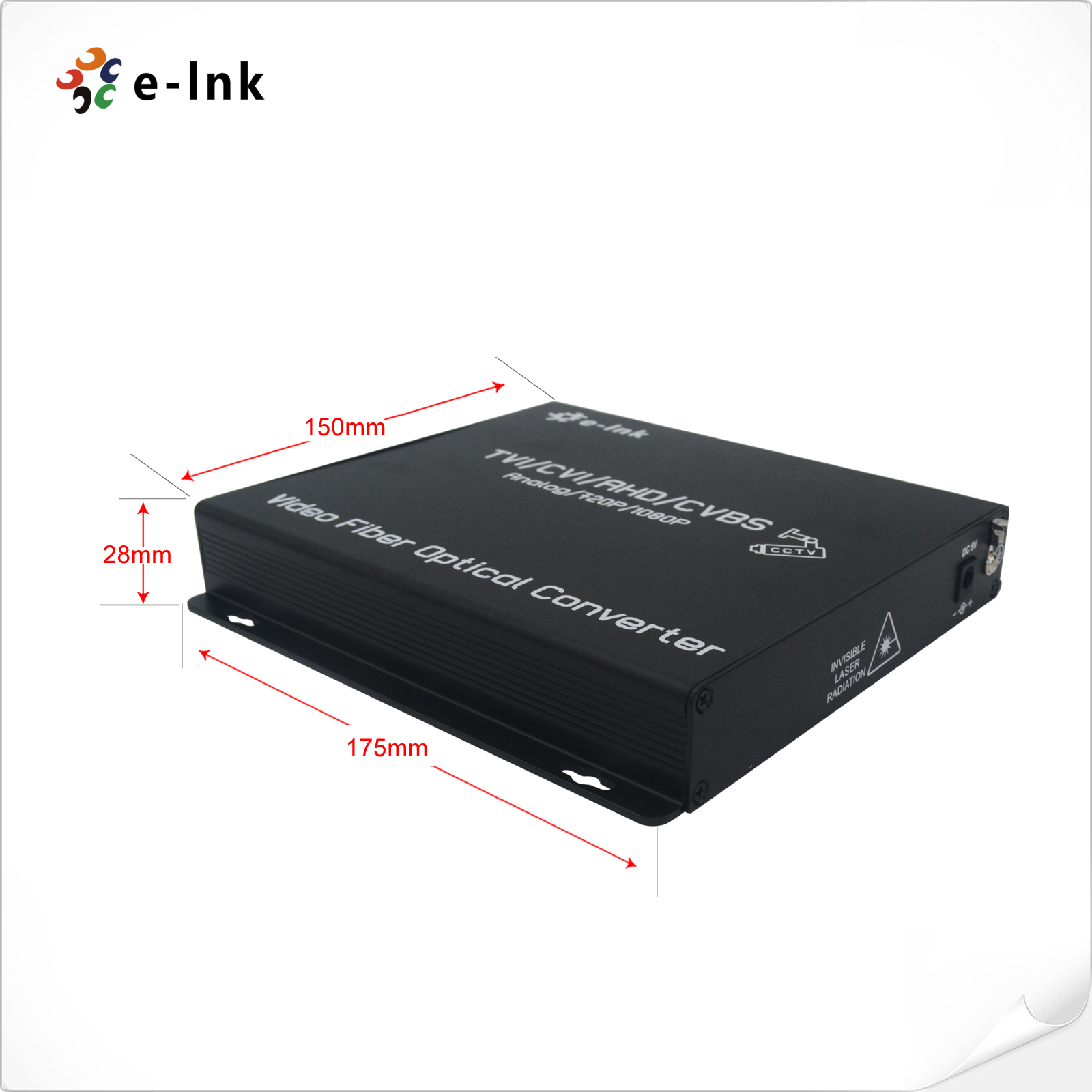 E-link 4Ch AHD/CVI/TVI/CVBS Fiber optic transceiver can simultaneously transmit 4 channels AHD, HD-CVI, HD-TVI or CVBS Video over one multimode or single-mode optical fiber. Electronic and optical adjustments are never required. LED indicators are provided for instantly monitoring system status. Devices are available for either standalone or rack-mount installation, which is suitable for different working environment. It supports input video format as 25/30/50/60fps@720P & 25/30fps@1080P.