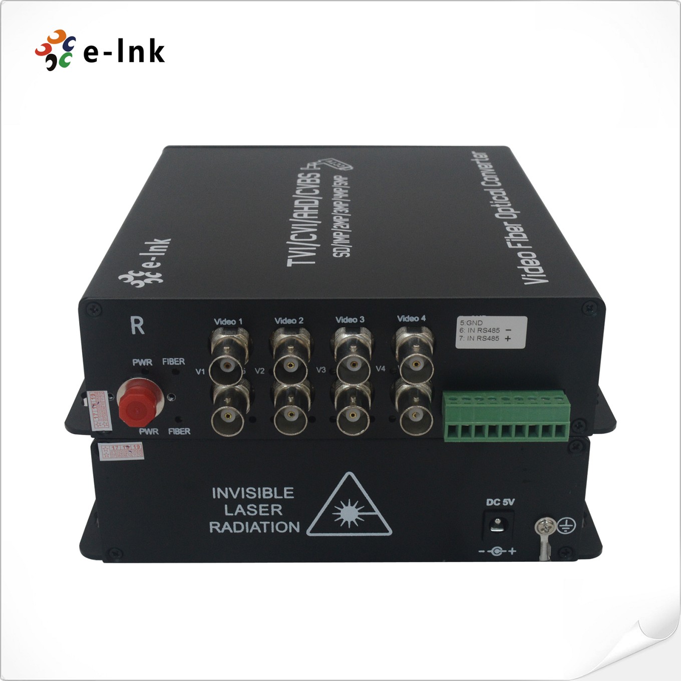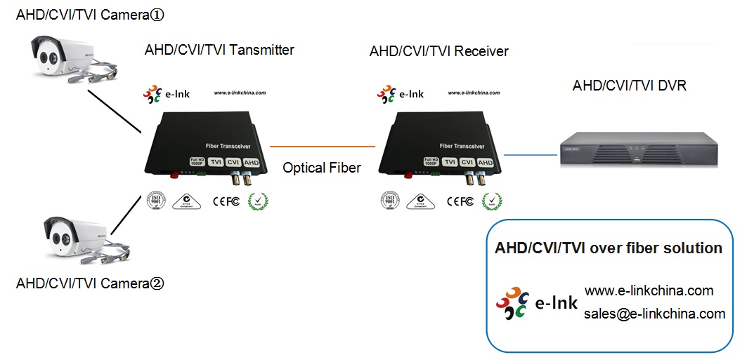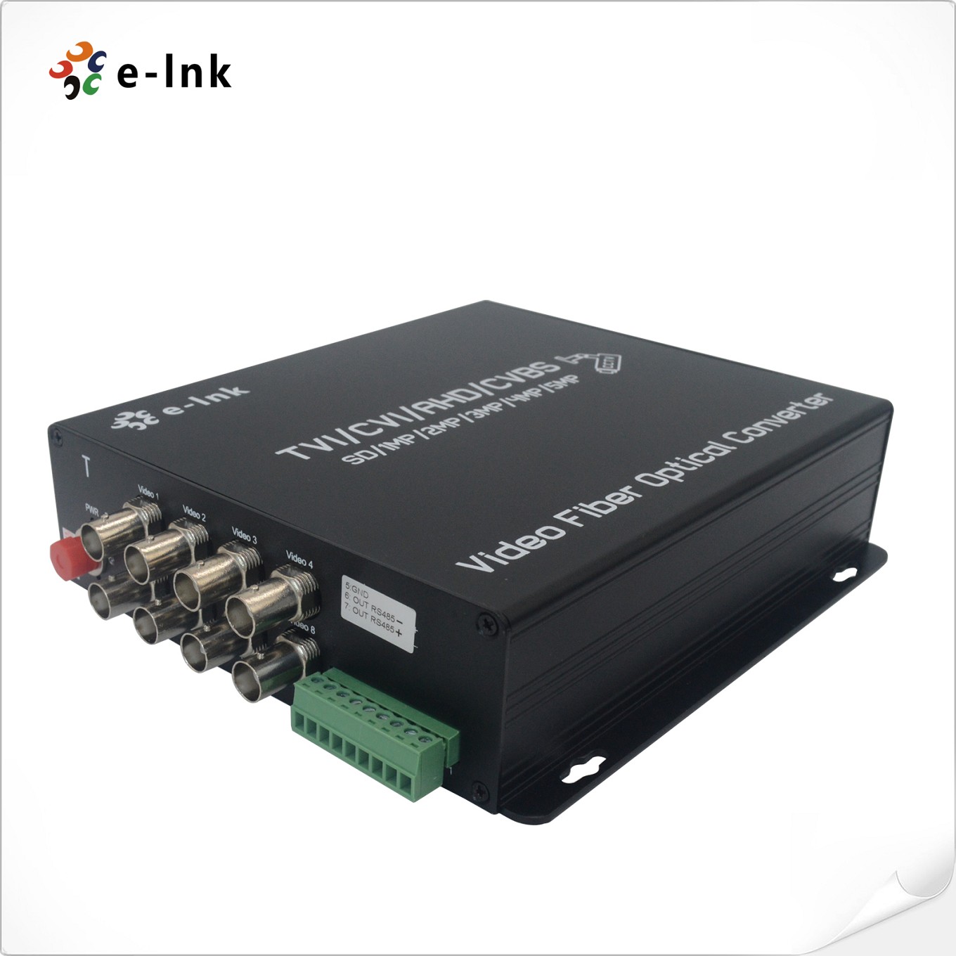 E-link HD-AHD/HD-CVI/HD-TVI/CVBS 4-in-1 Video Fiber Converter adopt the advanced uncompressed HD composite video and high velocity digital optical transmission technologies which convert the AHD, HD-CVI, HD-TVI or CVBS composite signals to optical signals to achieve long distance(as far as 120Km) transmission through fibers. E-link 8Ch AHD/CVI/TVI/CVBS Fiber optic transceiver can simultaneously transmit 8 channels AHD, HD-CVI, HD-TVI or CVBS Video over one multimode or single-mode optical fiber. Electronic and optical adjustments are never required. LED indicators are provided for instantly monitoring system status. Devices are available for either standalone or rack-mount installation, which is suitable for different working environment. It supports 5MP 4MP 3MP 1080P 720P Camera.
