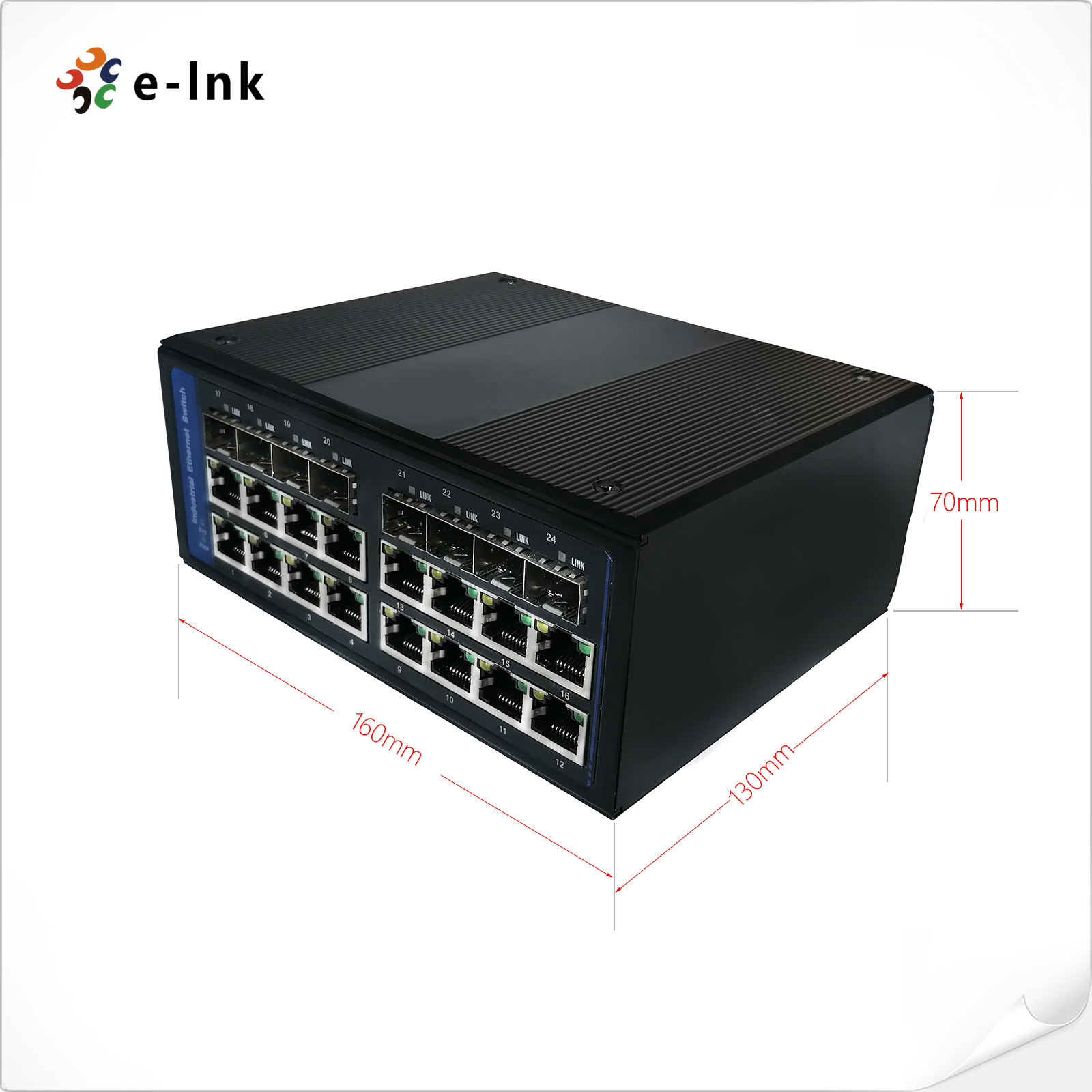 LNK-GYM7816GP-SFP Series is a new generation industrial Power over Ethernet Managed Ethernet switch with 16-Port 10/100/1000Base-T 802.3at PoE+ and 8-port 100/1000Base-X SFP that provide stable and reliable Ethernet transmission offered by E-link, with high quality design and reliability. It is positioning in the broadband network intervention market, to offer and realize Ethernet data exchange, convergence and long-distance optical transmission with efficient bandwidth and reliable fiber optic network solutions for users. The industrial switch complies with various characteristics such as mini size, no fan, low power consumption, high reliability and stability, and easy to maintain.