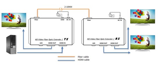 ► Transmits HDMI video signals up to 2km-60km over one fiber optic cable;