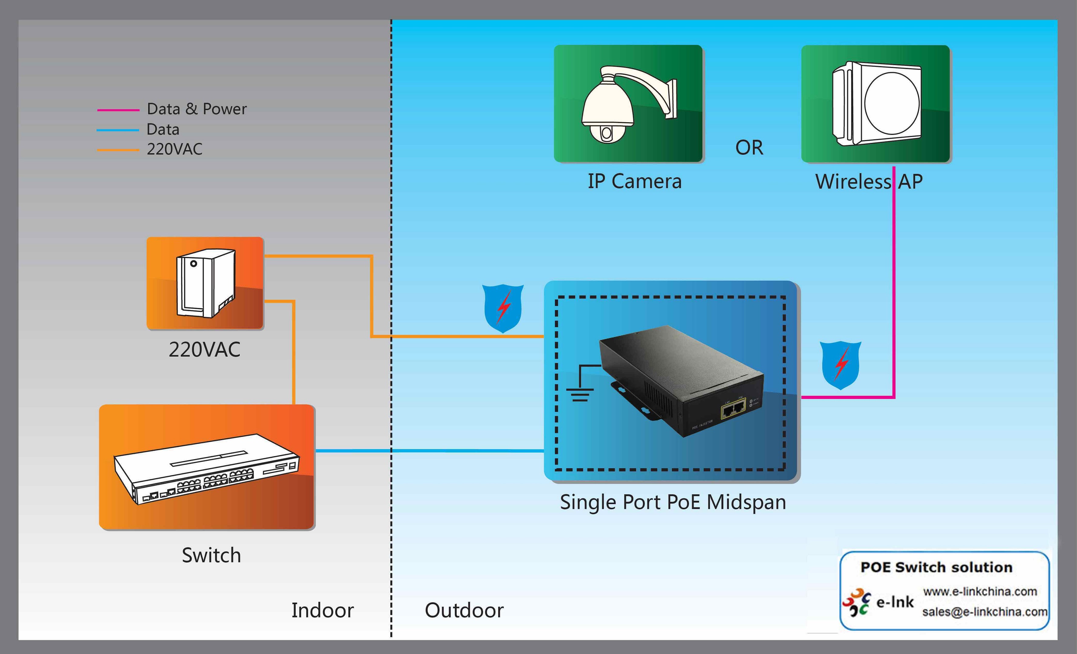►Power over Ethernet (PoE) Injector delivers a PoE signal for distances of up to 100 meters (328 ft.)