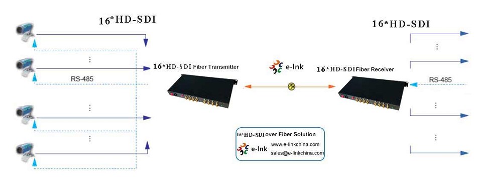 ►16 channel HD-SDI video transmission over optic fiber