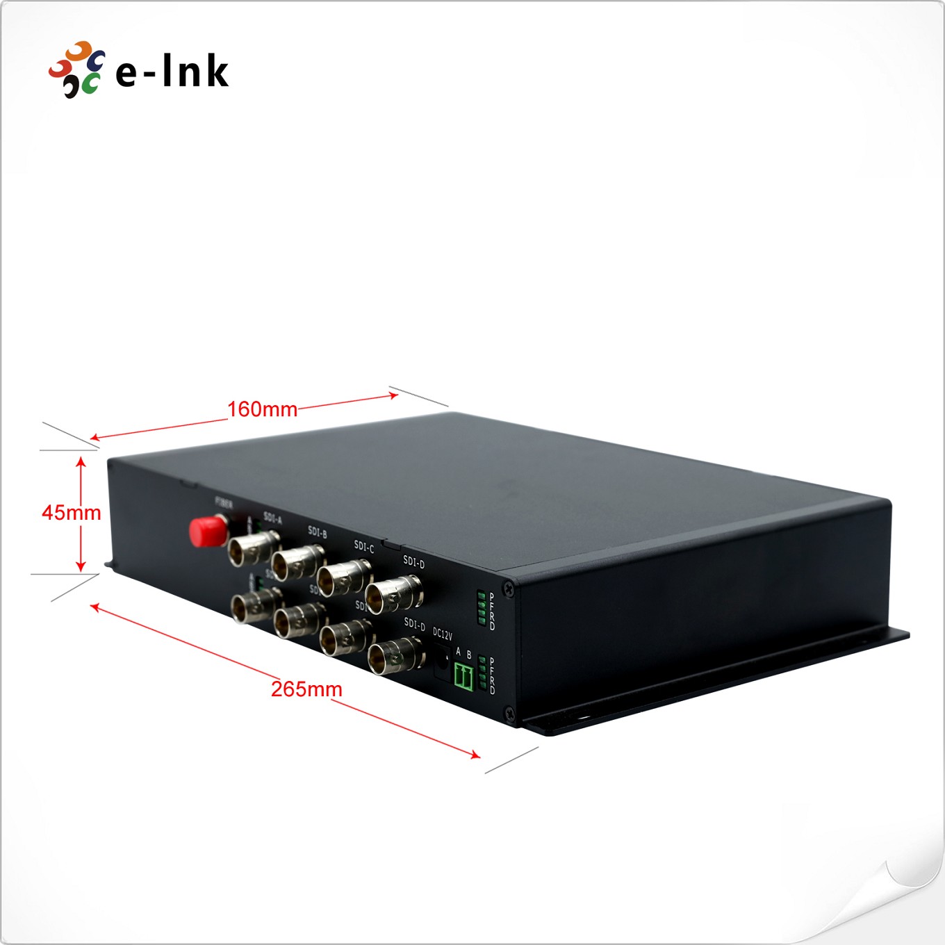 LNK-SDI-8V Series supports 8-channel HD-SDI standard high-definition video signal transmitted via single fiber optical cable. E-link HD-SDI Video over Fiber Converters includes one transmitter and one receiver for 1080P HD-SDI signal. E-link HD-SDI Fiber Converters can simultaneously transmit 8-Ch HD-SDI Video, 1-Ch Reverse RS-485 data, signal through a single optical fiber. The video quality up to broadcast standard, audio quality up to CD level, supports Reverse RS-485 data communication format.