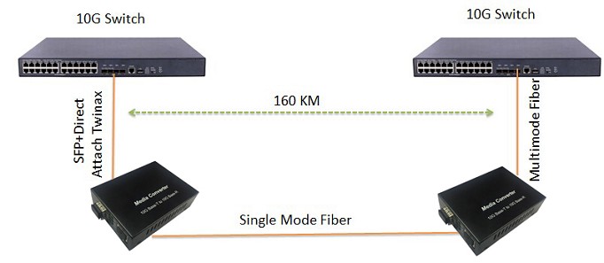 ►Extend the network distance between two 10 Gigabit Fiber Switches across a fiber link up to 80km in length