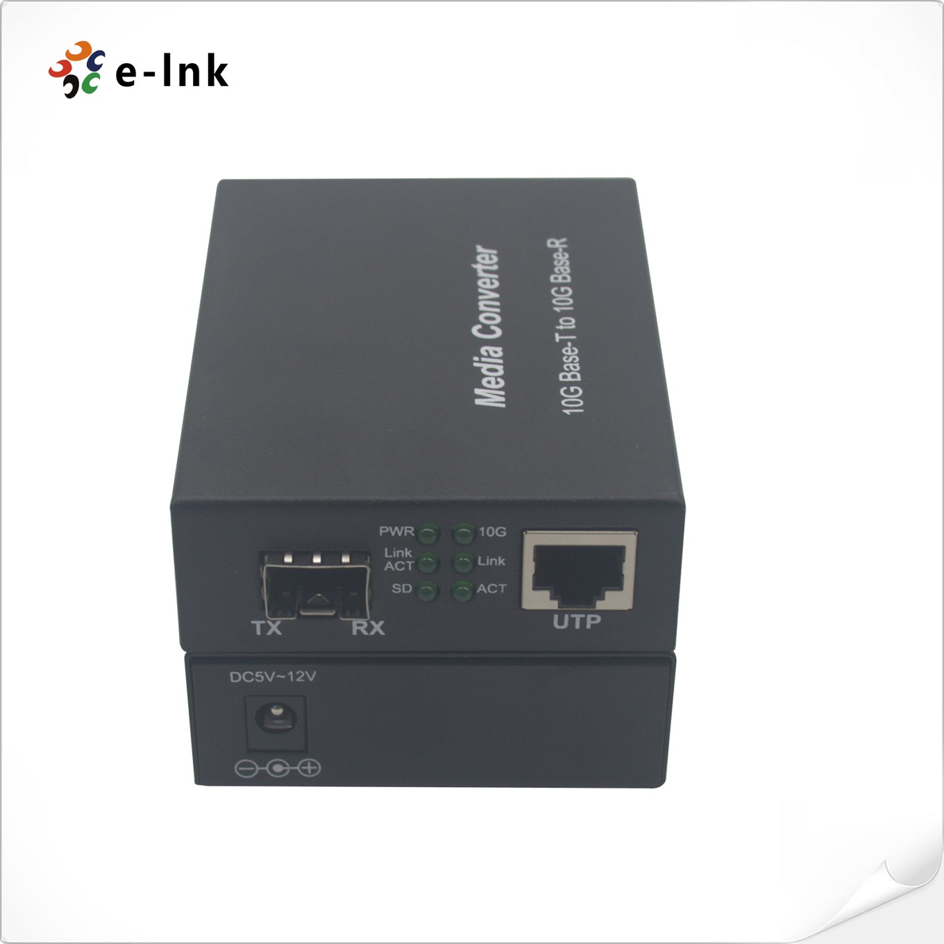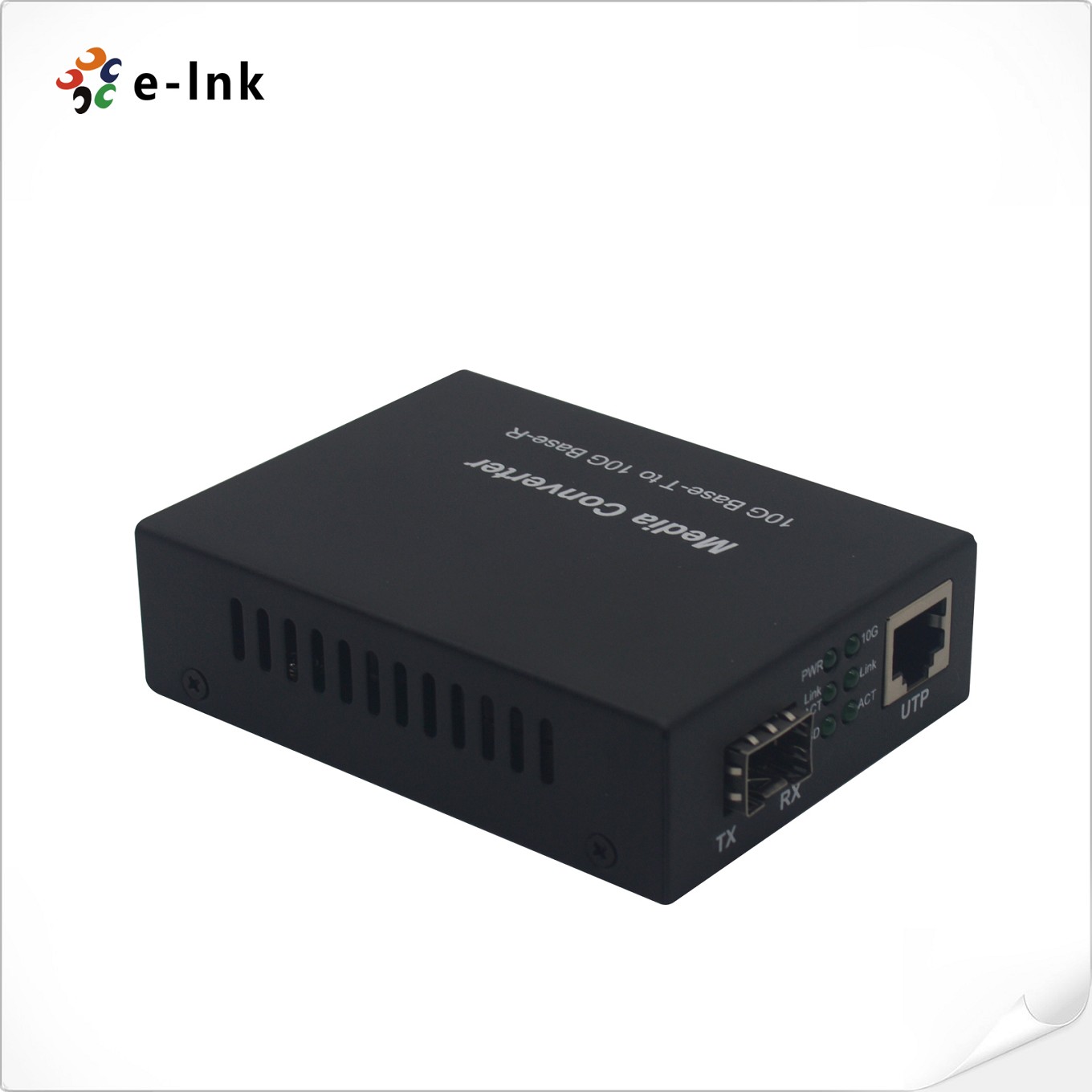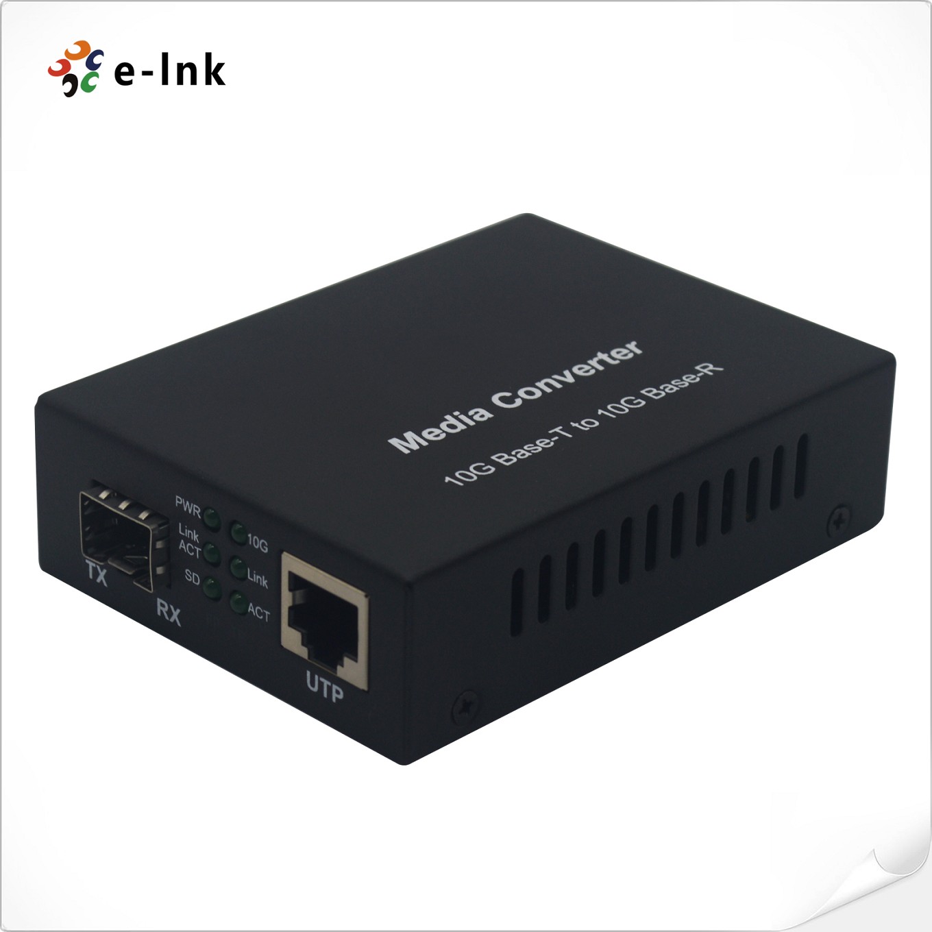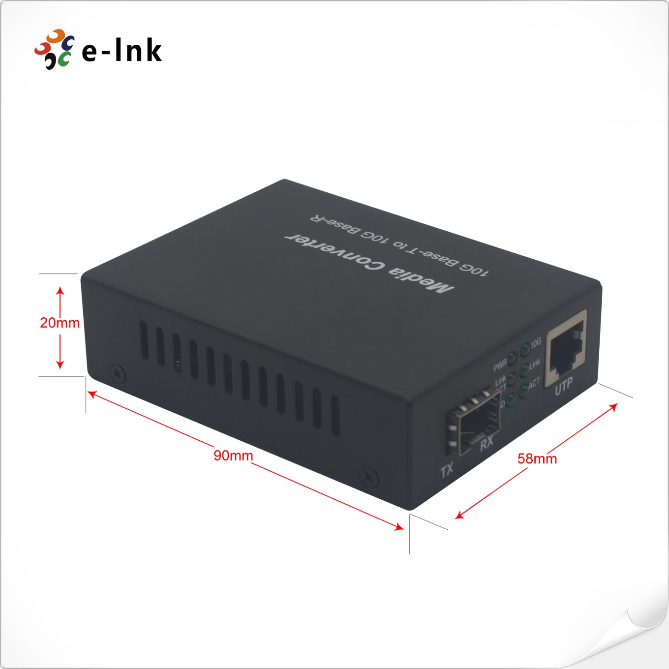 E-link 10G Base-T to 10G Base-R Media Converter supports two types media for network connection such as 10GBase-T and 10GBase-FX. The bridge media converter is designed with a 10G base Ethernet PHY chip that connects two types segments operation smoothly. This converter can be used as standalone unit or as slide-in module to the19" converter rack Chassisfor use at a central wiring closet.