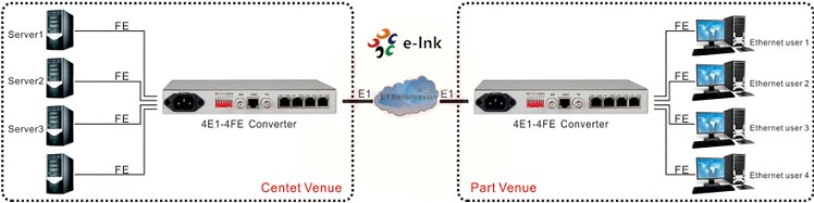 This interface converter is based on FPGA, using reverse direction multiplexing technology to bundle for multiple E1 circuits to transmit the Ethernet data of 4 Channel 100BASE-TX. It can realize 1~4 E1 channel to convert between Ethernet optical interface. This device can transmit the transceiver signal point to point to Ethernet optical interface to make E1 channels interconnected with Ethernet optical interface. Unlike general remote network bridge, this device can support 1-4 Channel E1 channel configuration, can automatically detect the number of E1 and select the E1 available. It allows E1 lines transmission time delay difference.