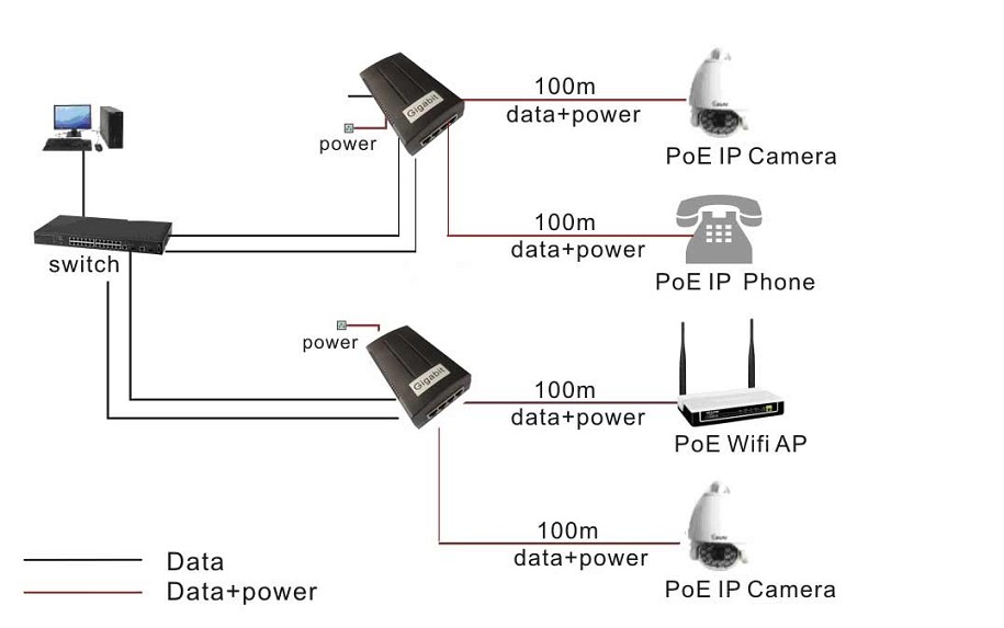 The LNK-POE202/LNK-POE302 Power over Ethernet (PoE) adapter is designed to supply operational power to surveillance cameras and wireless LAN devices such as access points, bridges and routers. It enables power current to travel on the Ethernet network cable, thus eliminates the need to directly connect a power supply to the wireless LAN device. Power and Data are combined on a single cable, thus eliminating the need for extra power lines and also reducing installation costs and manpower.