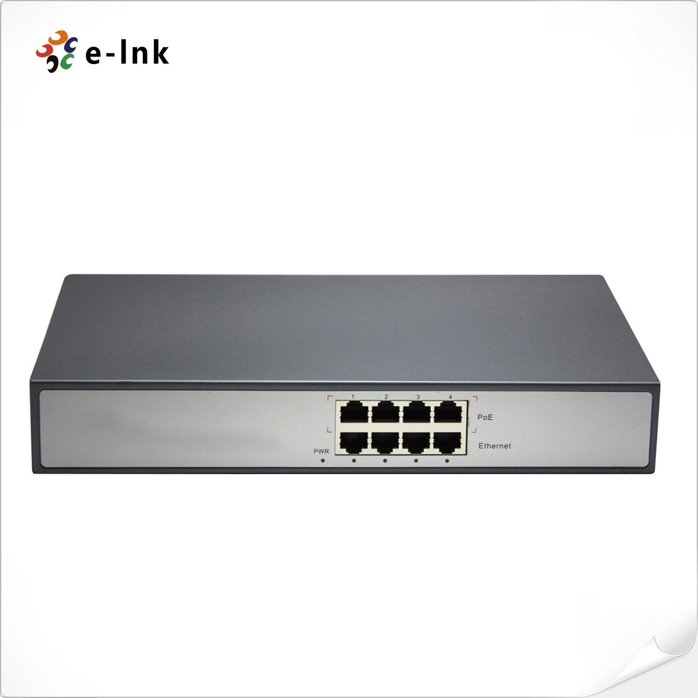 PoE Injector is also called as Power over Ethernet mid-span devices. 4-Port PoE injector, that is PoE power supply module, is the most flexible and the hottest products among the power supply devices. There are 4x RJ45 PoE ports for these 8-Port PoE injectors. This mid-span have 4x2 Standard RJ45 network ports, one group of network ports will use for upper Ethernet switches or other network devices, another group of network ports will support POE power supply output with network data output.