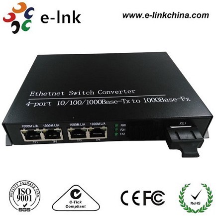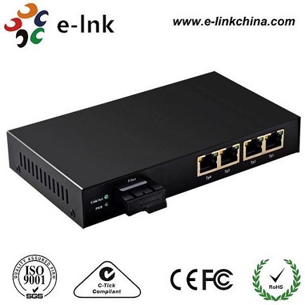 LNK-1400G Series 4 port Gigabit Ethernet Switch with four 10/100/1000M UTP ports and one 1000M SC sockets, which converting the 4 independent 1000Base-TX twisted pair electrical signal with 1000Base-FX optical signal. It extends the network transmission range from 100m over copper wires to 120Km (single-mode full-duplex mode). The product is possessed of stable performance, excellent quality and reasonable price because of adopting latest IC from USA and high quality of transceivers. It is applicable to use in small patterns of Optical Fiber Ethernet.