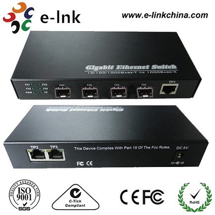 LNK-4300G is 3 port Gigabit Ethernet Switch with 4 10/100/1000M SFP ports, which converting the 2 independent 1000Base-TX twisted pair electrical signal with 1000Base-FX optical signal. It extends the network transmission range from 100m over copper wires to 120Km (single-mode full-duplex mode). The product is possessed of stable performance, excellent quality and reasonable price because of adopting latest IC from USA and high quality of transceivers. It is applicable to use in small patterns of Optical Fiber Ethernet.