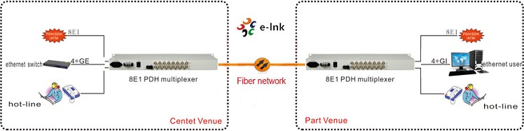 This device is the point-to-point optical transmission device developed on the basis of VLSI. The device provides 1-8 Channel E1 interface, 1-4 Channel 10M/100M Ethernet interface (Line Rate 100M) and 2 expansion interfaces. 4 Channel Ethernet interface is switch interface, can support VLAN. 1 expansion interface can be used as the transmission channel of RS232/RS485/RS422 asynchronous data, voice signal, 2/4 line E&M audio signal, switch signal, Ethernet signal (Bandwidth 2M).1 Channel digital business phone can be optional. It is very flexible. It has alarm function. The work is reliable, stable, and low power consumption, high integration, small size.