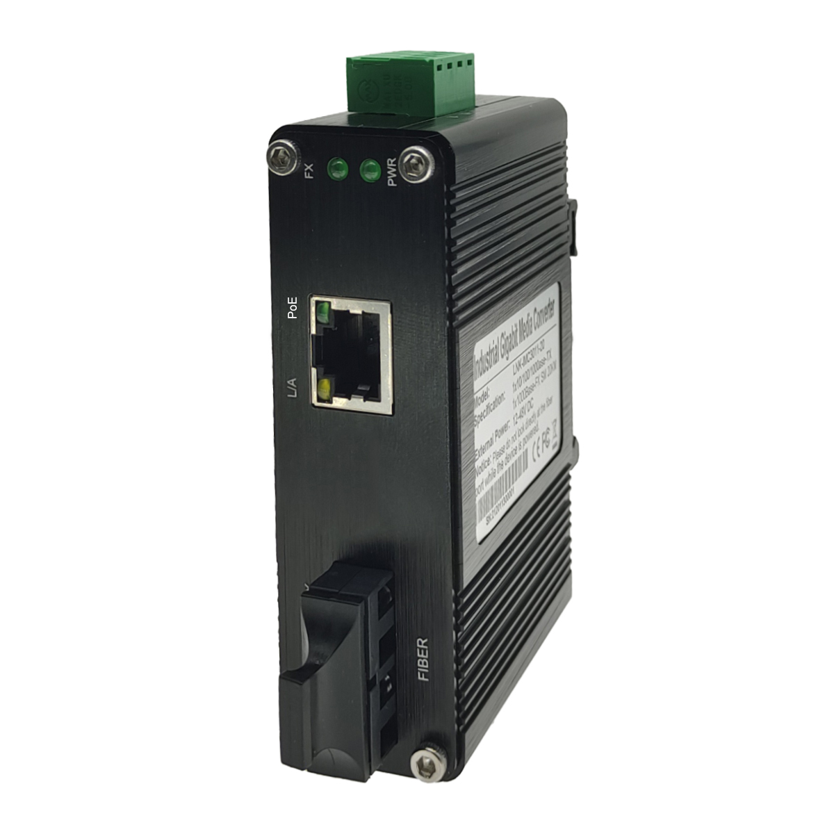 Mini Industrial PoE Media Converter, 1-port 100BASE SC + 1-port 10/100BASE-T 802.3at PoE, SC Fiber Port,Single Mode, 1310nm,20km |