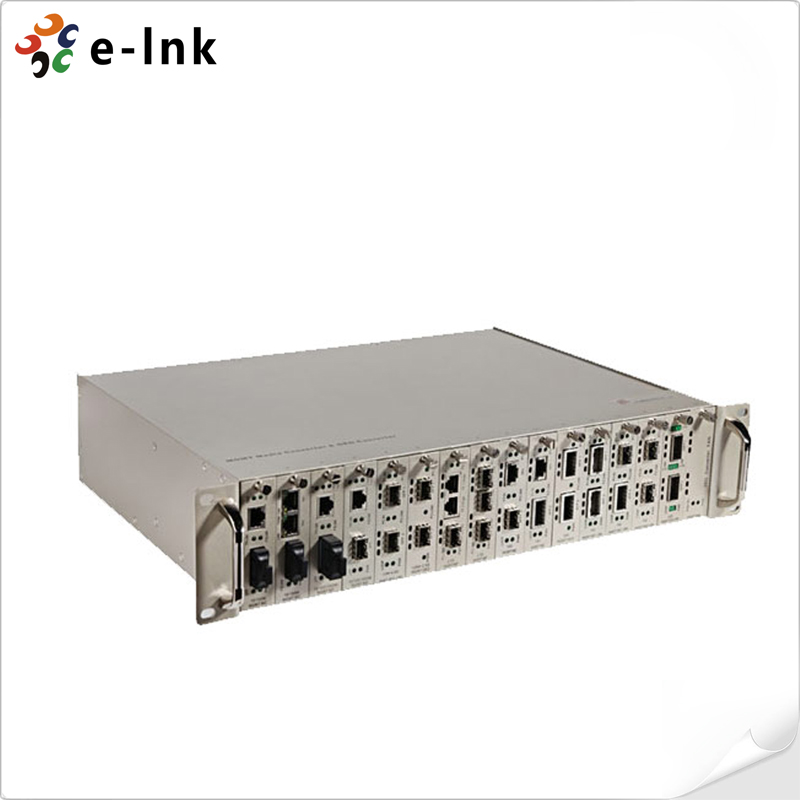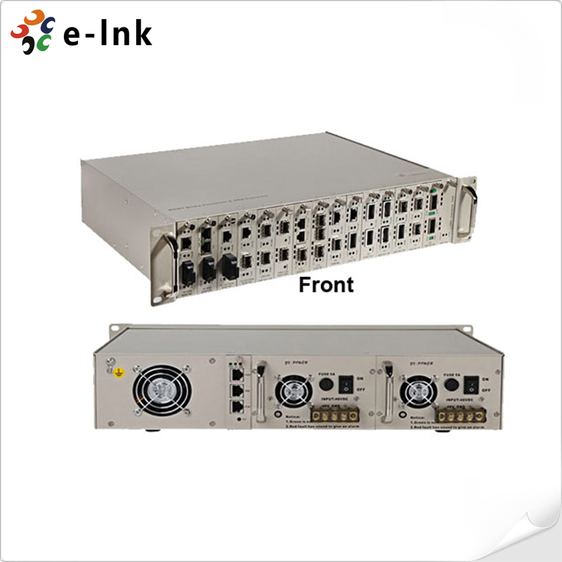 19''2U Manageable Media Converters Chassis: 16+1 network management slot-dual power supply, AC220V or DC-48V for central office