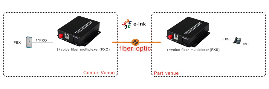 E-link 1 channel POTS (Plain Old Telephone System) phone lines over fiber converter/extender. This Voice over Fiber converter uses RJ-11C modular connectors for each copper pair connection. FXO type unit connects to a telephone line (PSTN) or PBX station line and has ability to detect ringing voltages and to act as a telephone. FXS type unit is the reciprocal unit and has ability to act as PSTN and connects to a telephone device.Features