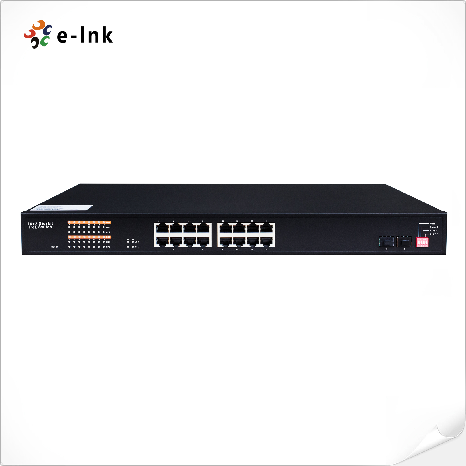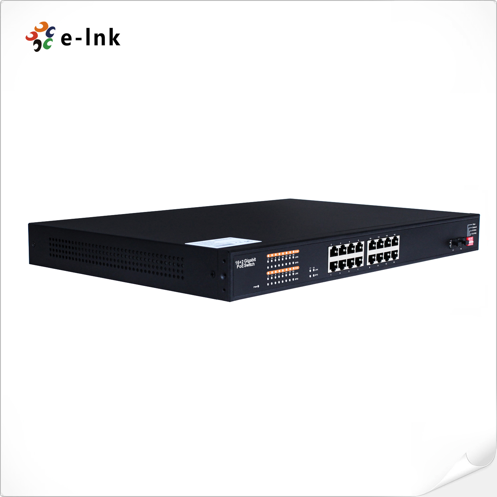 LNK-216GP-SFP is a new generation Unmanaged PoE switch with 16-Port 10/100/1000Base-TX and 2-Port 100/1000 SFP that provide stable and reliable Ethernet transmission offered by E-link, with high quality design and reliability. It is positioning in the broadband network intervention market, to offer and realize Ethernet data exchange, convergence and long-distance optical transmission with efficient bandwidth and reliable fiber optic network solutions for users. The industrial switch complies with various characteristics such as mini size, no fan, low power consumption, high reliability and stability, and easy to maintain.