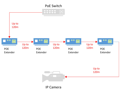 ► 4-Ports PoE Extender can forward both Ethernet and PoE power for 4 terminal equipment via Cat5 UTP cables