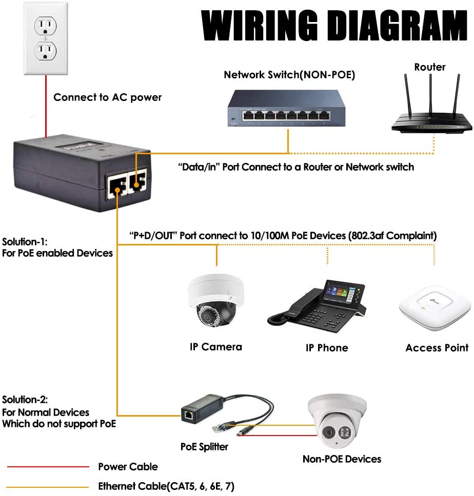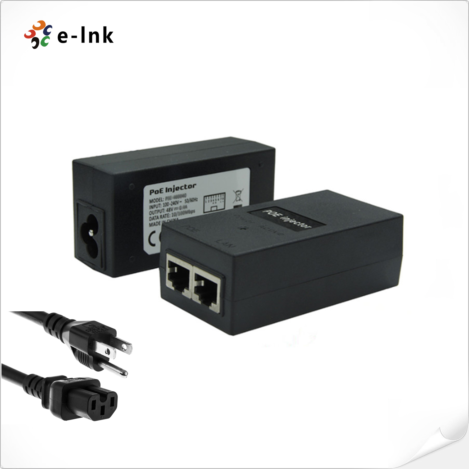 10/100/1000Mbps 48V 24W POE Injector with Power Cord |
