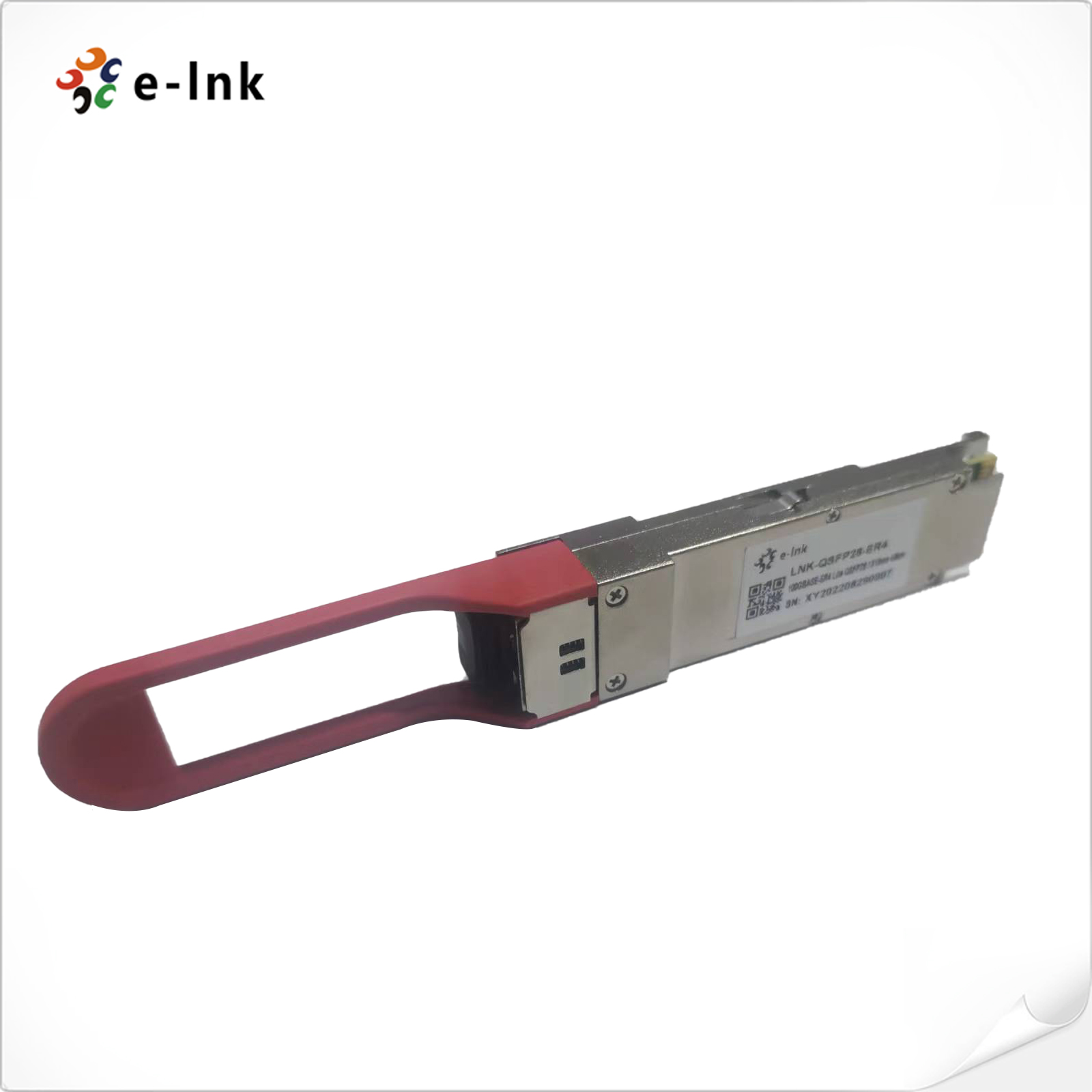 The LNK-QSFP28-ER4 is a transceiver module designed for 40kmwith FEC (30km without FEC)optical communication applications. The design is compliant to 100GbASE-ER4 of the IEEE 802.3-2012 Clause 88 standard IEEE 802.3bm CAUI-4 chip to module electrical standard ITU-T G.959.1-2012-02 standard. The module converts 4 inputs channels (ch) of 25.78 Gbps to electricaldata to 4 lanes optical signals, and multiplexes them into a single channel for 100Gb/s optical transmission. Reversely, on the receiver side, the module optically de-multiplexes a 100Gb/s input into 4 lanes signals, and converts them to 4 lanes output electrical data.