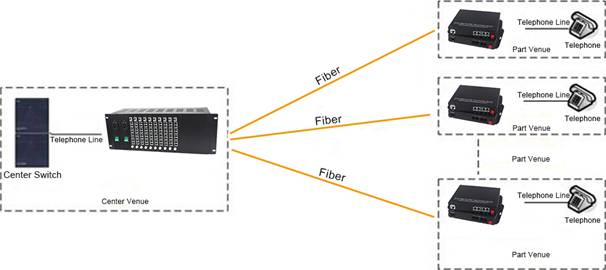 ► Supporting simultaneous operation of 4Ch or 8Ch Card-type Telephone Fiber Mux, which greatly improves system adaptability;