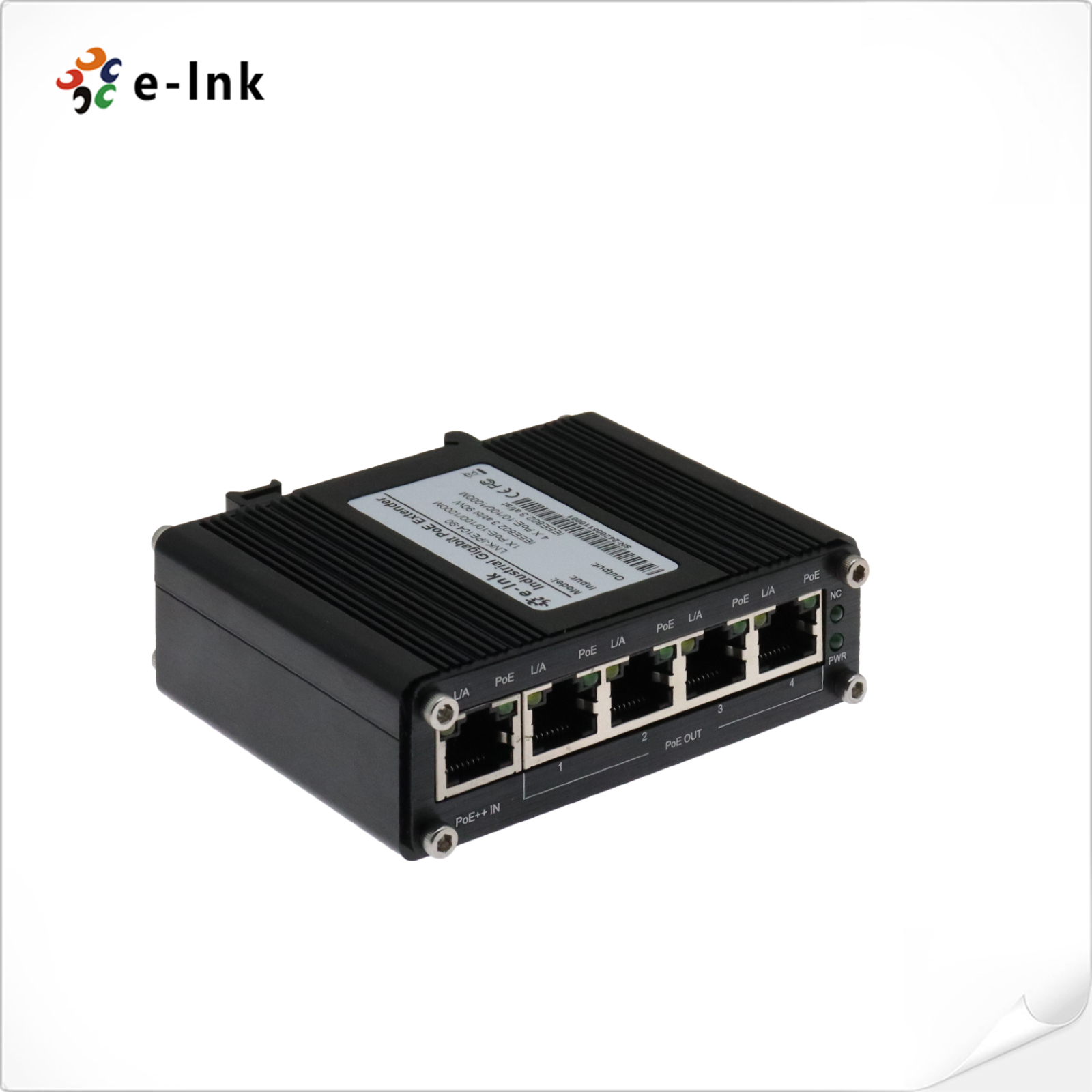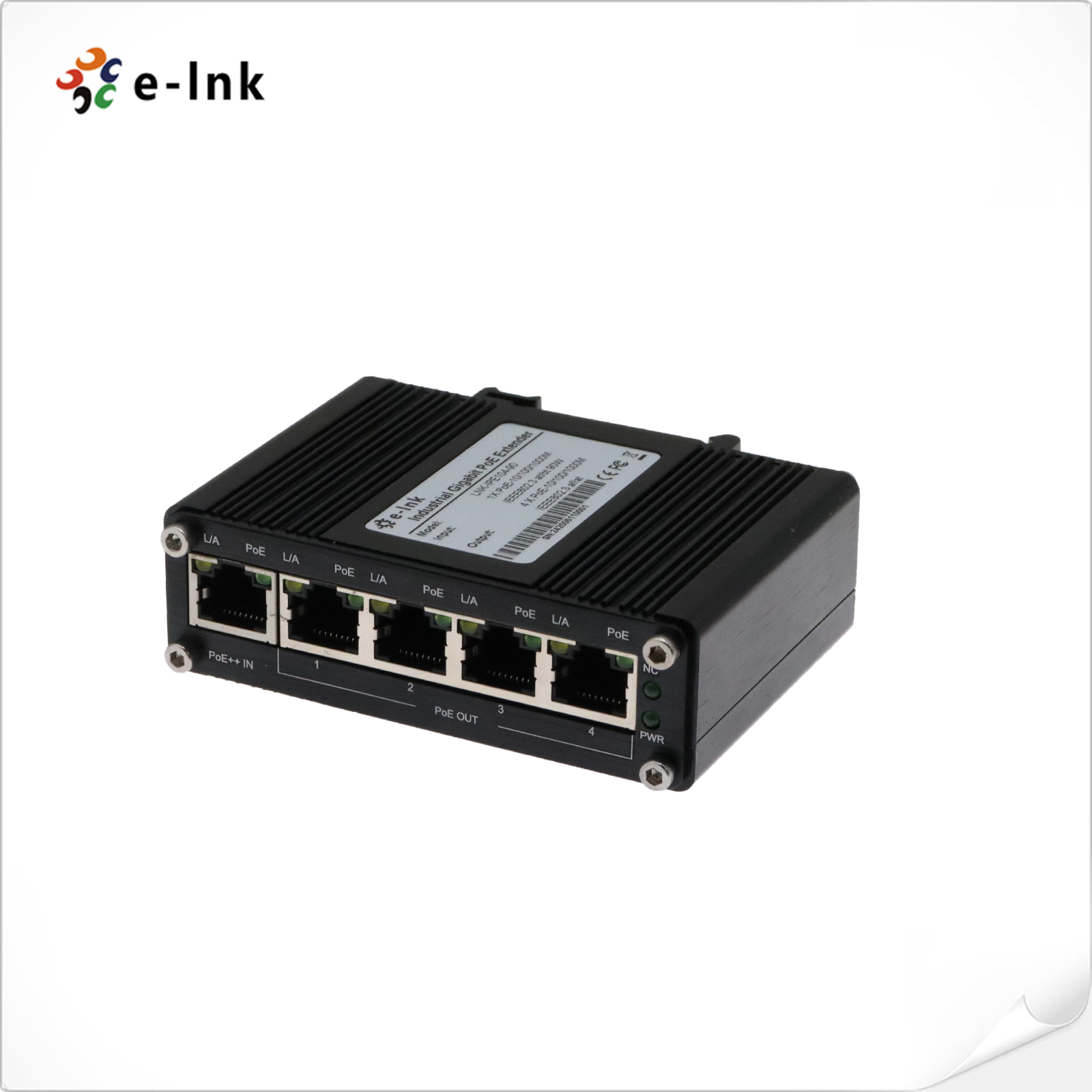 Industrial 1-Port 802.3bt PoE++ to 4-Port 802.3af/at Gigabit PoE Extender |