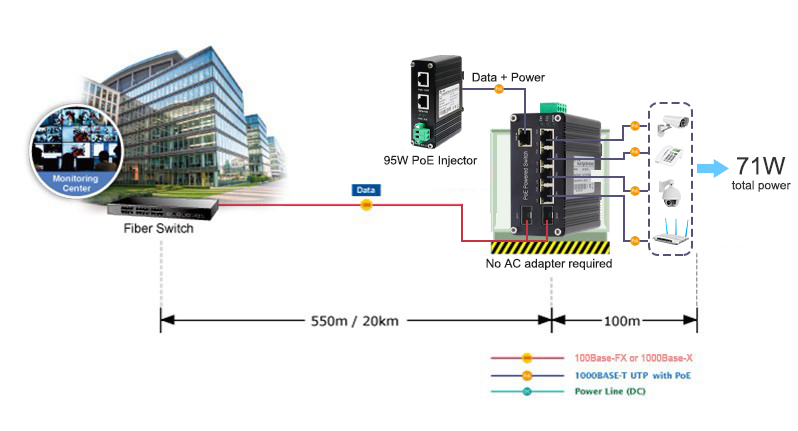 ► Four PSE PoE ports, PoE Power Budget up to 71 Watt