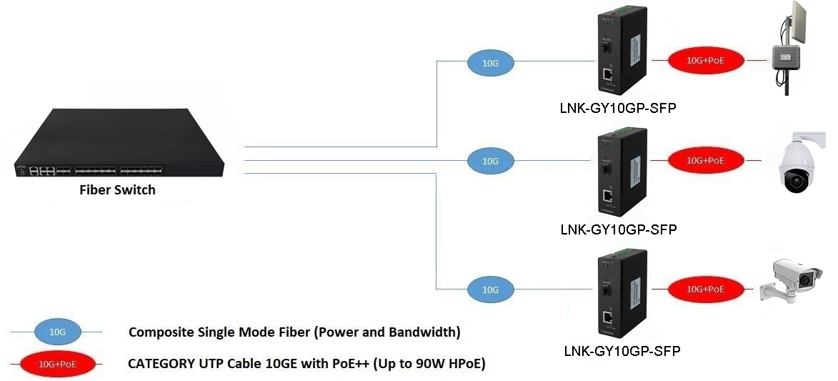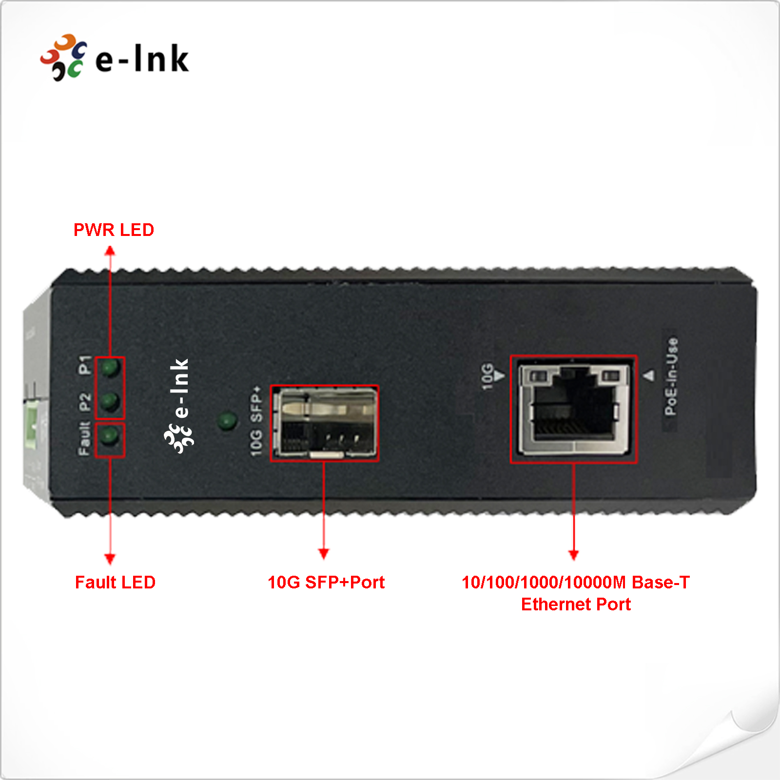 It is Ideal for wide range of applications from copper to fiber media conversion wherever up-to-10GE bandwidth is required in climatically demanding environments with wide temperature ranges.► One 10G/5G/2.5G/1G/100M Base-T RJ45 interface with IEEE 802.3bt PoE++ injector function