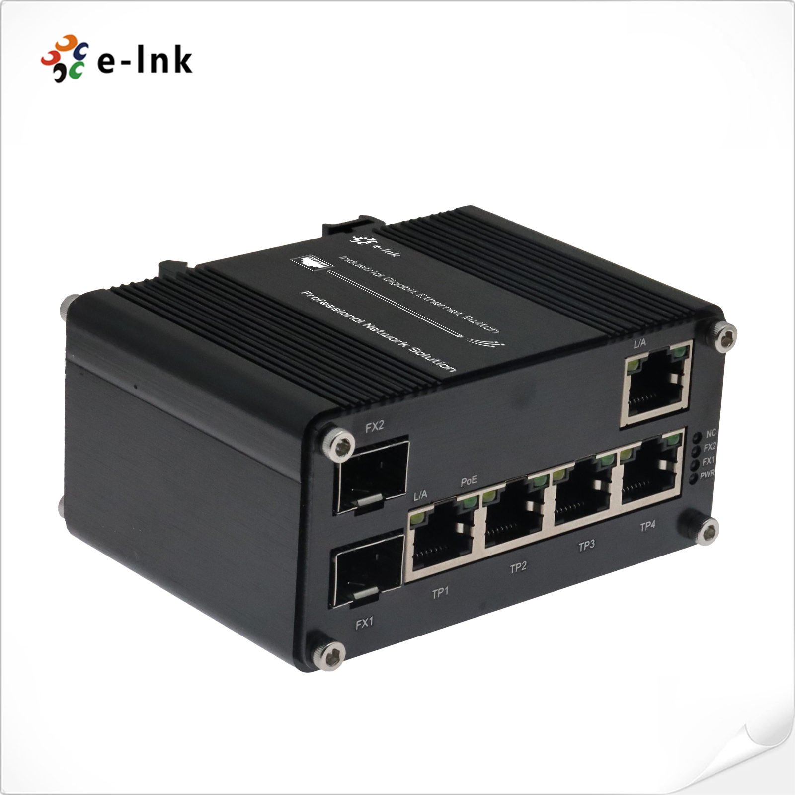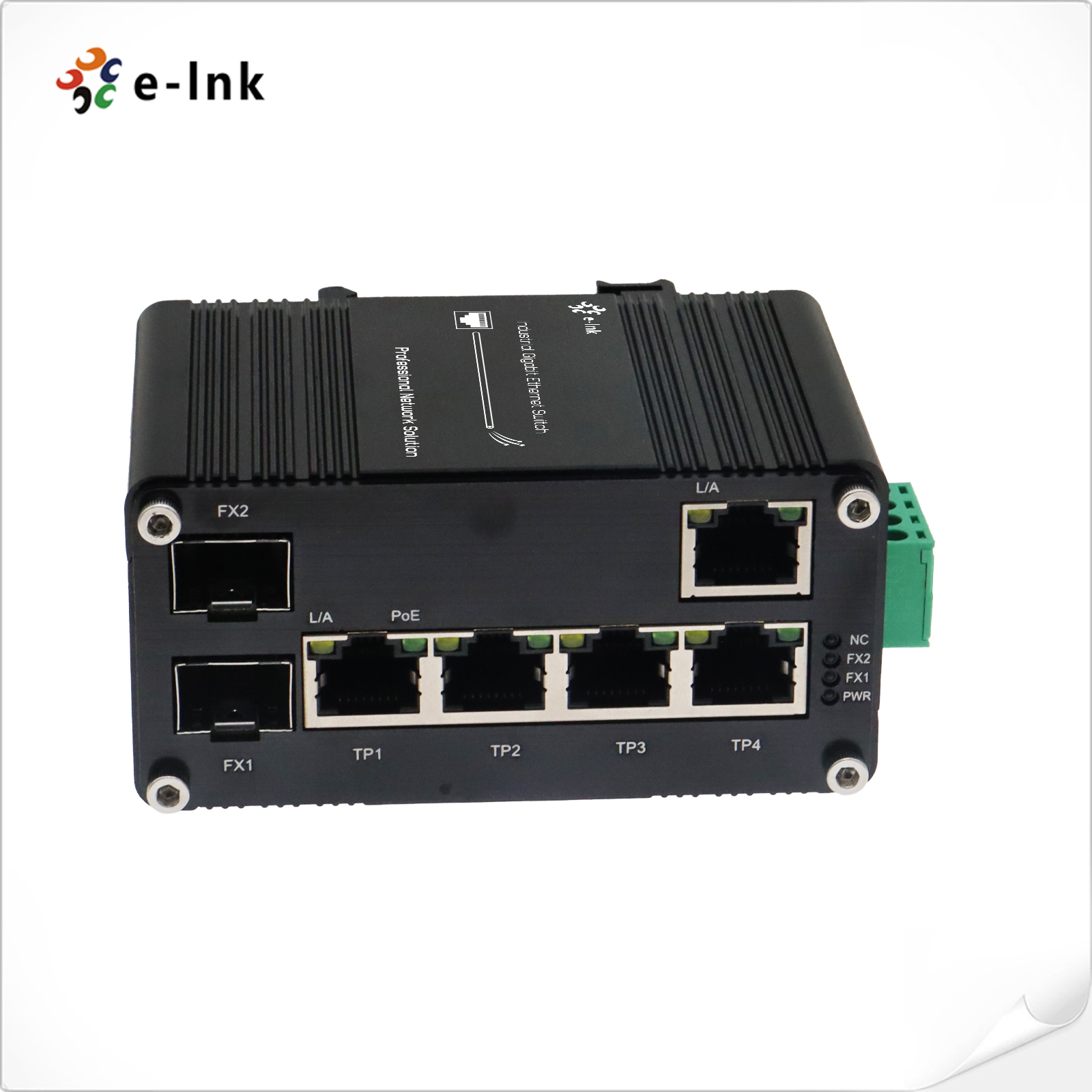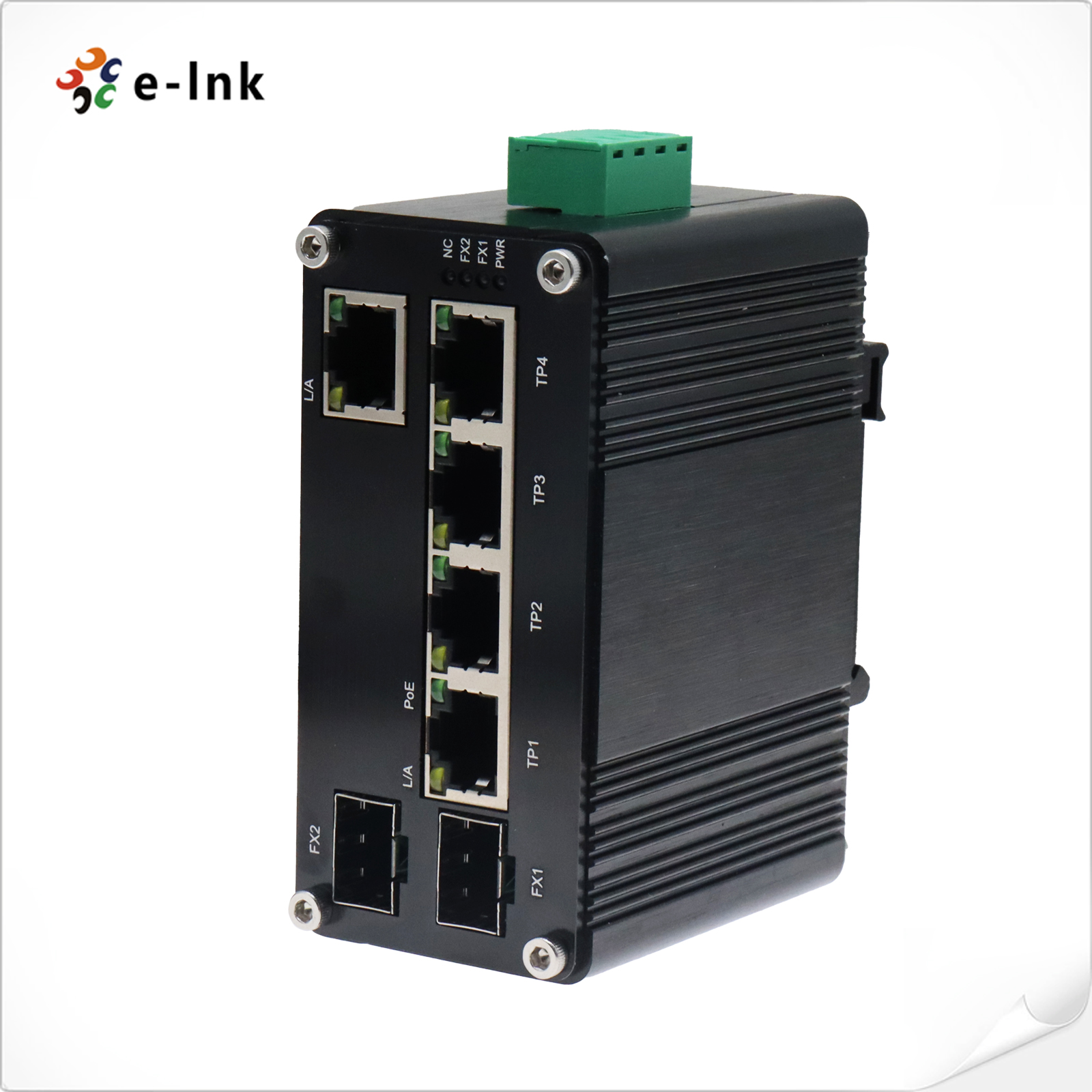 E-link LNK-IMC205GHP-SFP Series is a Mini Industrial High Power 90W 802.3bt PoE Switch with 4*10/100/1000T Ethernet ports that support IEEE802.3at/af/bt for a maximum of 90W/port, 1*10/100/1000T Gigabit Ethernet port, and 2*100/1000 dual rate SFP slots for fiber connection.