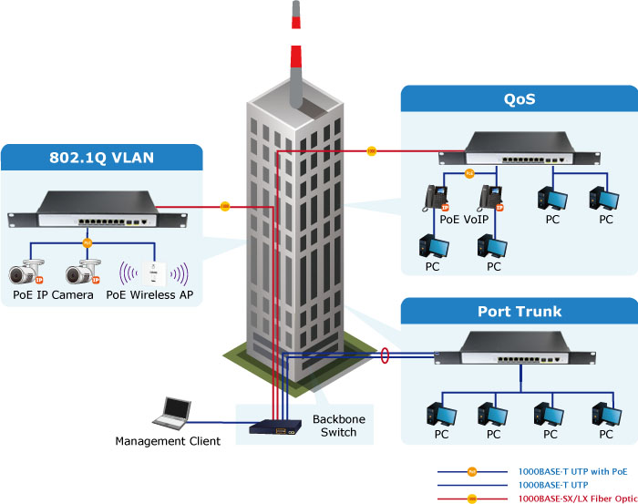 Support port-based VLAN Up to 4096 VLANs Support Voice VLAN |