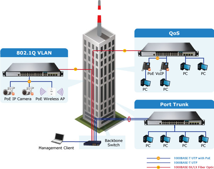 Support port-based VLAN Up to 4096 VLANs Support Voice VLAN |