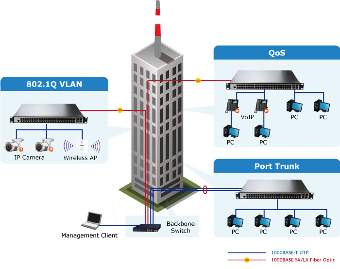 Support port-based VLAN Up to 4096 VLANs Support Voice VLAN |
