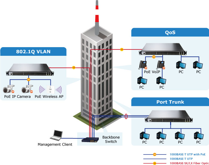 Support port-based VLAN Up to 4096 VLANs Support Voice VLAN |