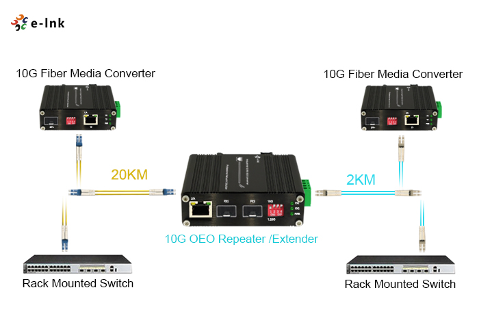 ETH-IMC2402-OEO series Industrial 10G OEO Converter is a connection between fiber to fiber 10Gbps equipment function as fiber media converter, or as fiber repeater for long distance transmission in harsh environment at operating temperature -40~ 80℃.