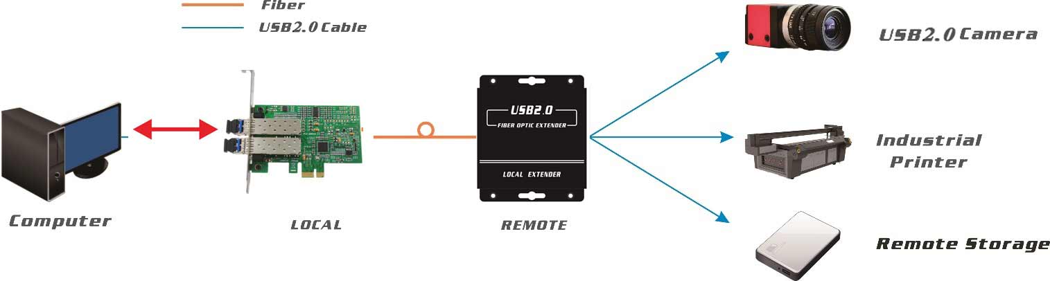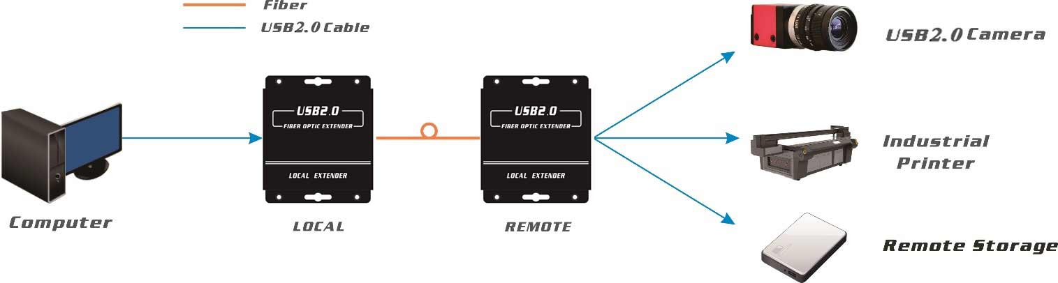 USB2.0 to Fiber Extender, Single 5V 2A External power supply |