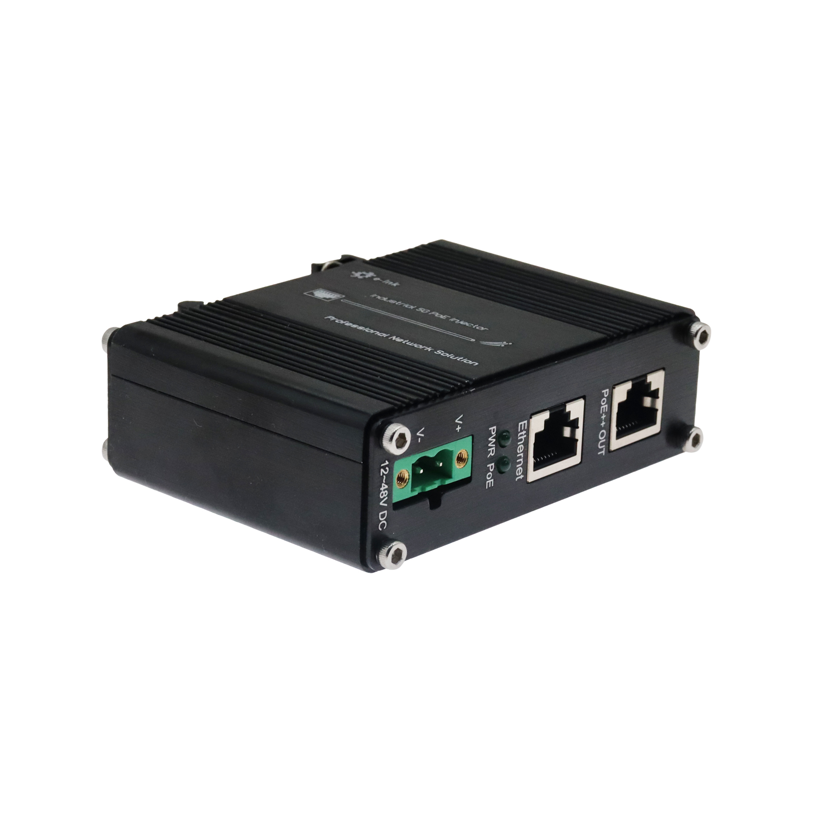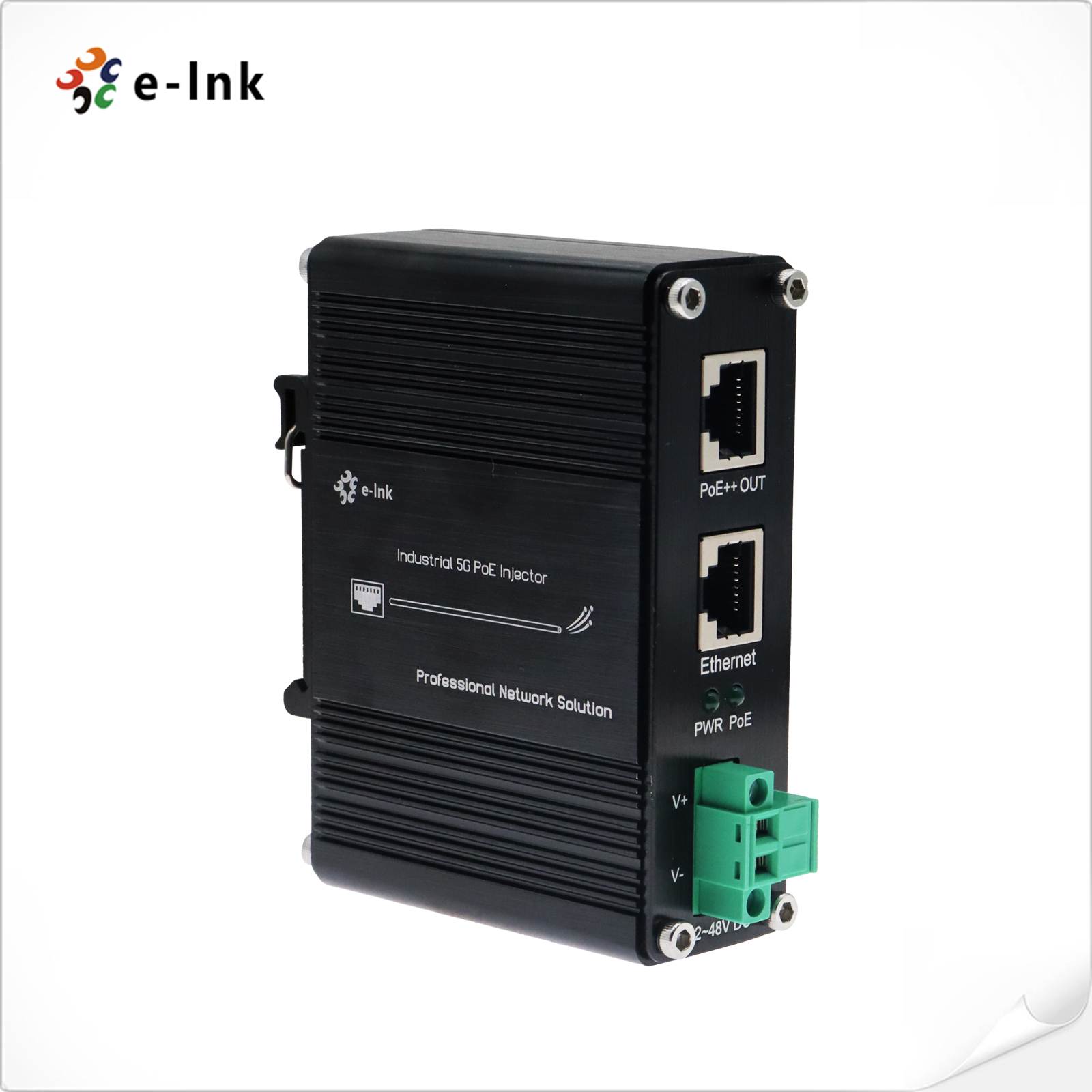 5G Hardened 1-port Ethernet Input + 1-port 95W PoE++ Output Injector with 12~48V DC wide range power input |