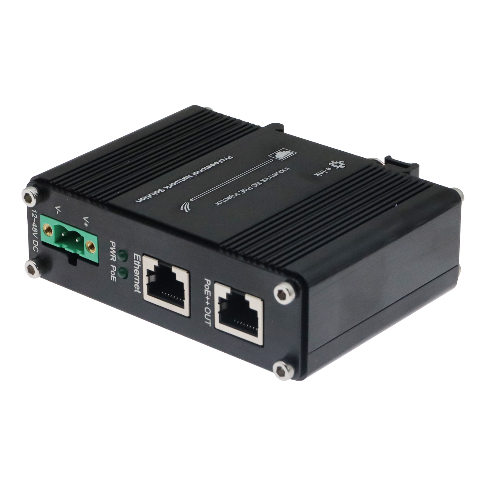 10G Hardened 1-port Ethernet Input + 1-port 95W PoE++ Output Injector with 12~48V DC wide range power input |