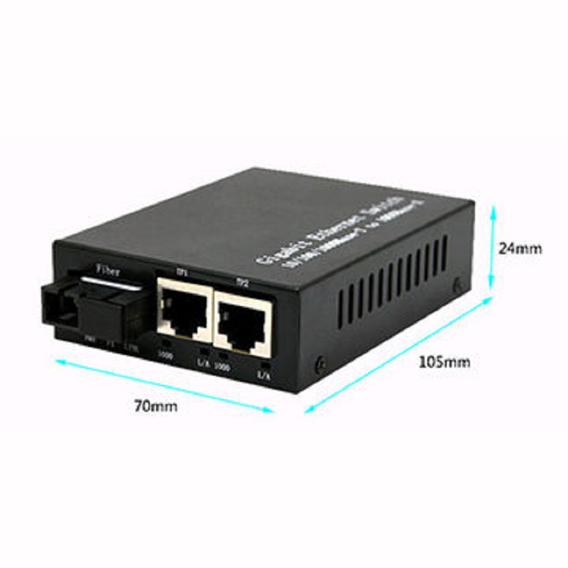 10/100/1000Base-Tx to 1000Base-Fx, 1 Fiber port + 2 RJ45 ports, single mode, 20km, 1310nm, SC, standalone, external power adaptor |