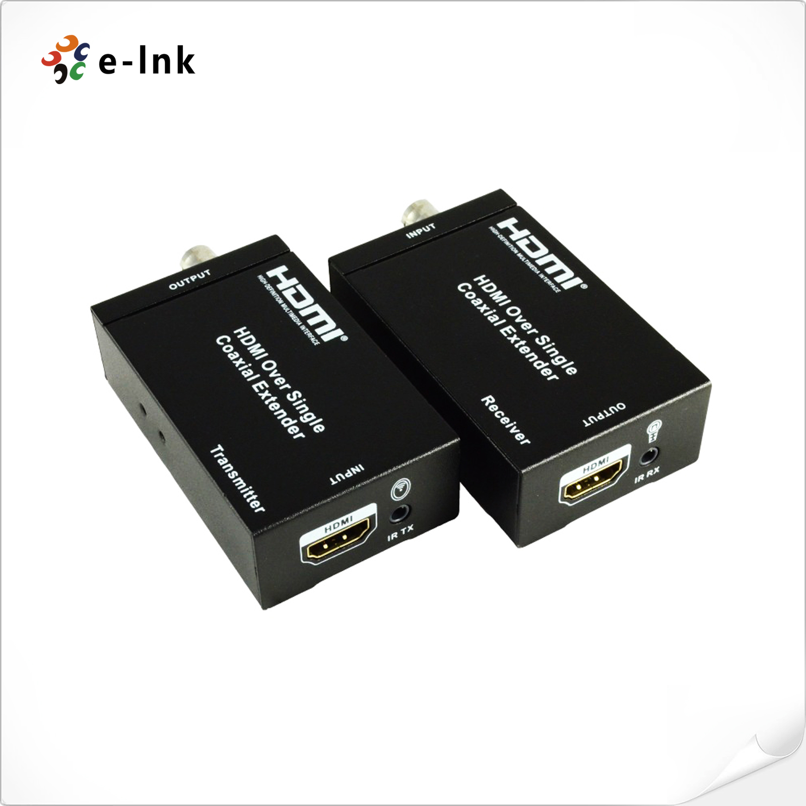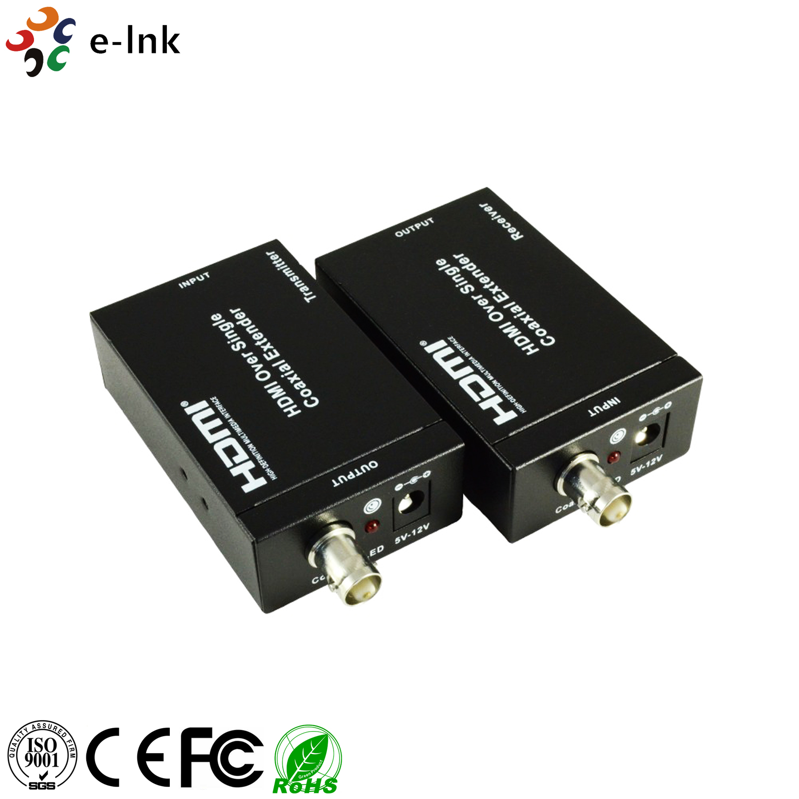 E-link HDMI Extender over Coaxial 100M BNC 75ohm RG-6U Coax Cable Balun is used for DVR, DVD, CCTV Camera and Home Theater. The Transmitter and Receiver sends HDMI + IR signals over one 75ohm Coaxial cable up to 100M (328ft) away. The HDMI + IR Over Single Coax Extender supports HDMI 1.2 and HDMI 1.3 with features such as Deep Color and 1080p. By using standard and widely available 75ohm RG-6U cables, the HDMI Over Single Coax Extender makes extending your HDMI + IR signal easier than using heavy and expensive copper cable and more robust than using optical fiber cable.