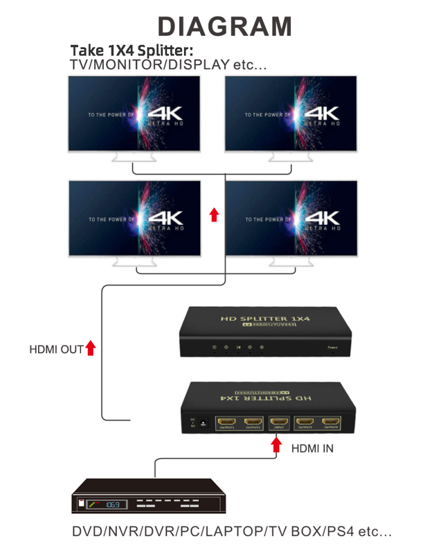 Other Fiber Optic & Networking Products► 1 HDMI input, 4 HDMI output