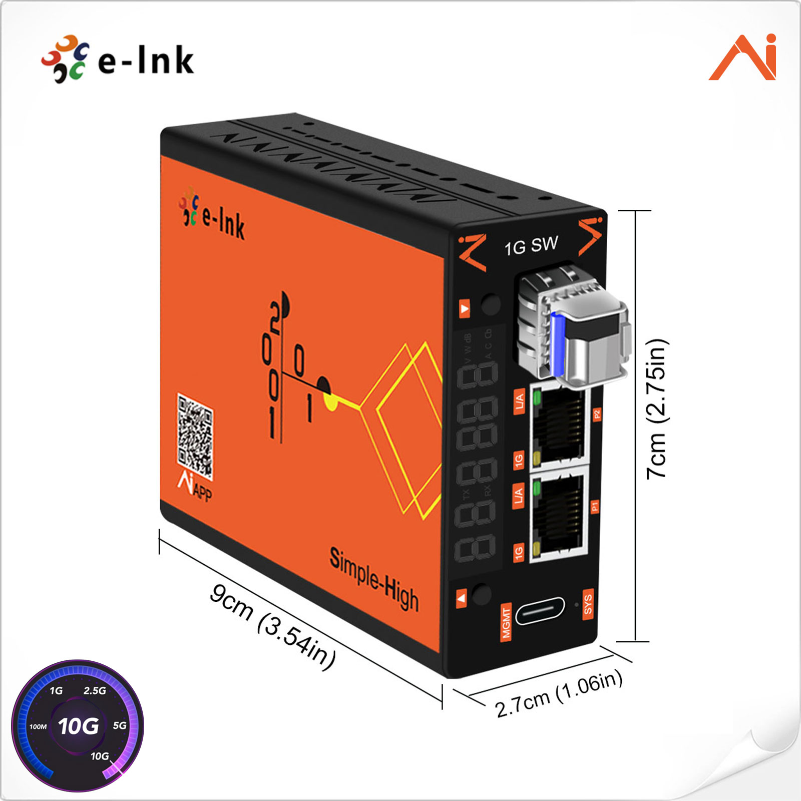 1-Port 100/1000Base-X SFP to 2-Port 10/100/1000BASE-T AI Smart Managed Fiber Media Converter, Include AC-DC Power Adapter |