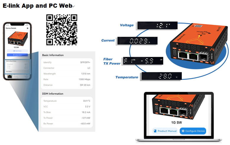 Other Fiber Optic & Networking Products► E-link's newly self-developed mobile APP and PC-based intelligent Web management.