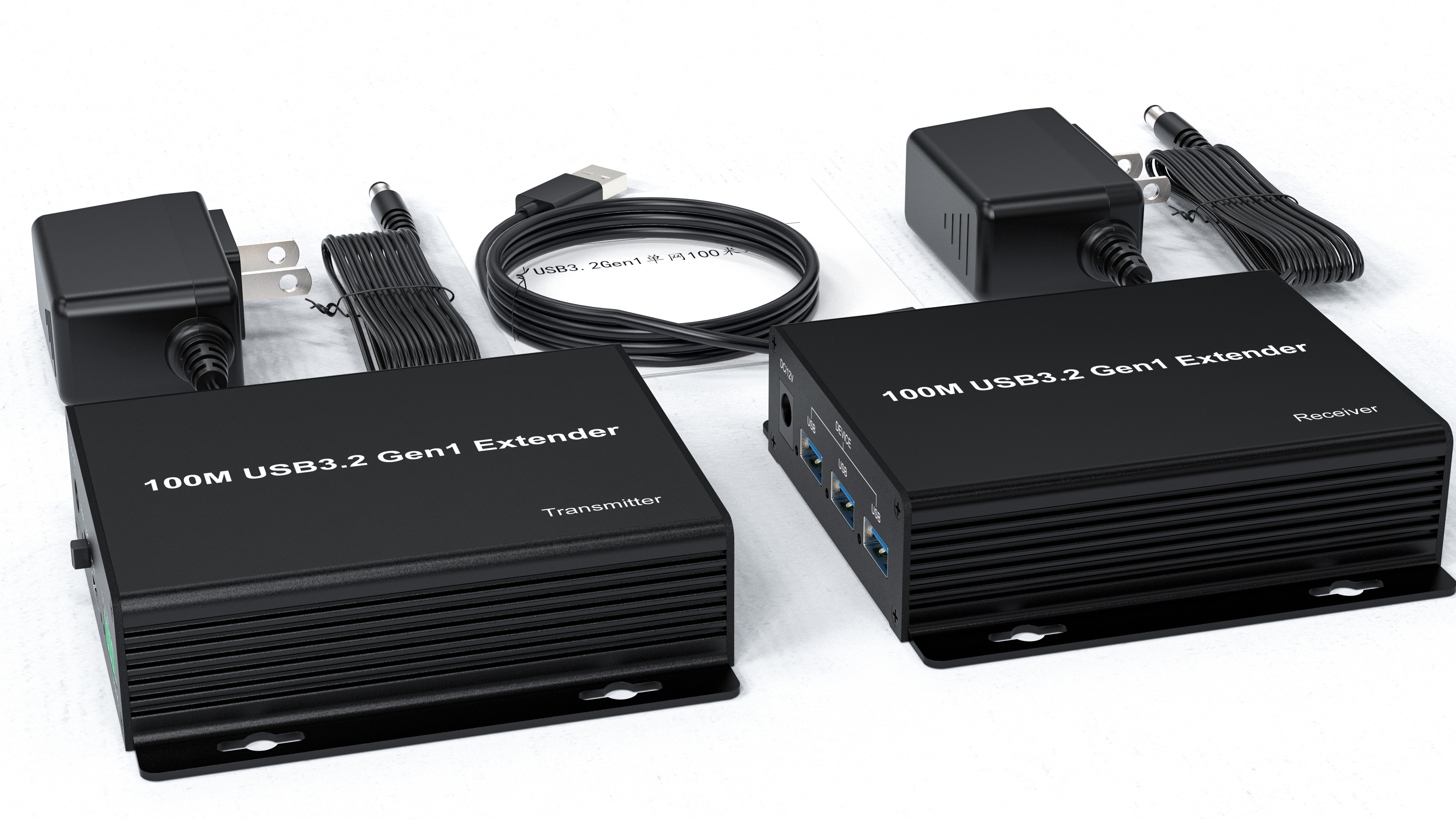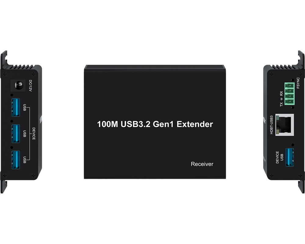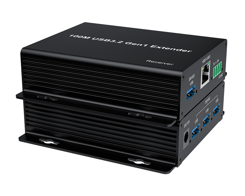 4-port USB 3.0 extender with RS232, up to 100m via Cat6A cable, used in pairs |