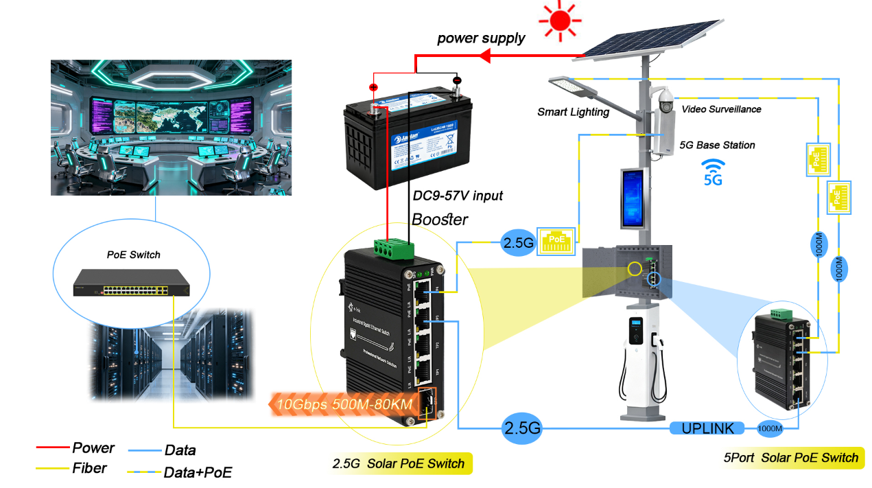 ► Solar PoE Switch DC9V to DC54V Voltage Booster